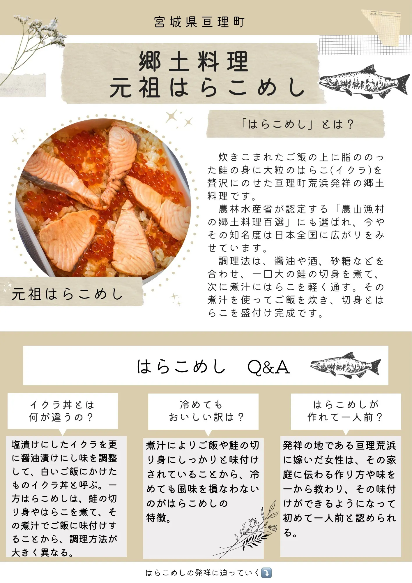 そんな「はらこめし」は地域に根差し、愛され、亘理町の誇りとなり120年以上も受け継がれている素晴らしい食文化です。