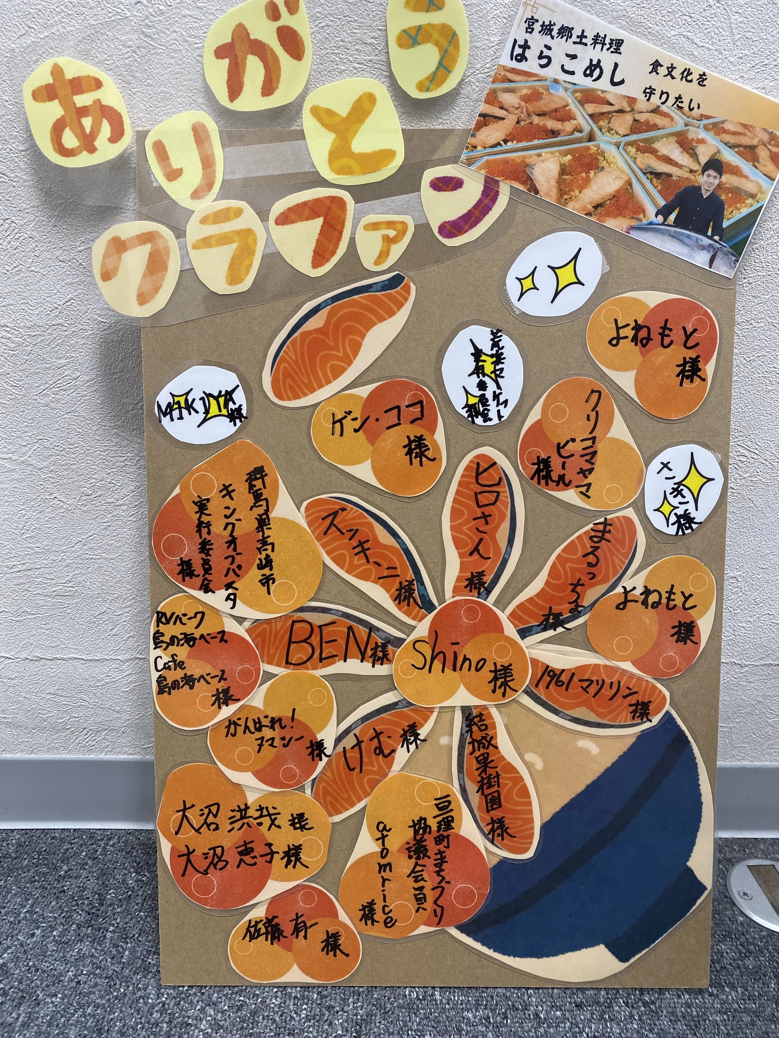 2024/09/29 16:07みなさまからのご支援ありがとうございます。準備が立て込んでいたためイベント終了後のお知らせとなってしまい申し訳ございません。ボードにてご支援いただいた方々のお名前を掲示させていただきました。とことんはらこめしにこだわりたくはらこめしをモチーフに作成したのがご確認いただければと思います。 もっと見る