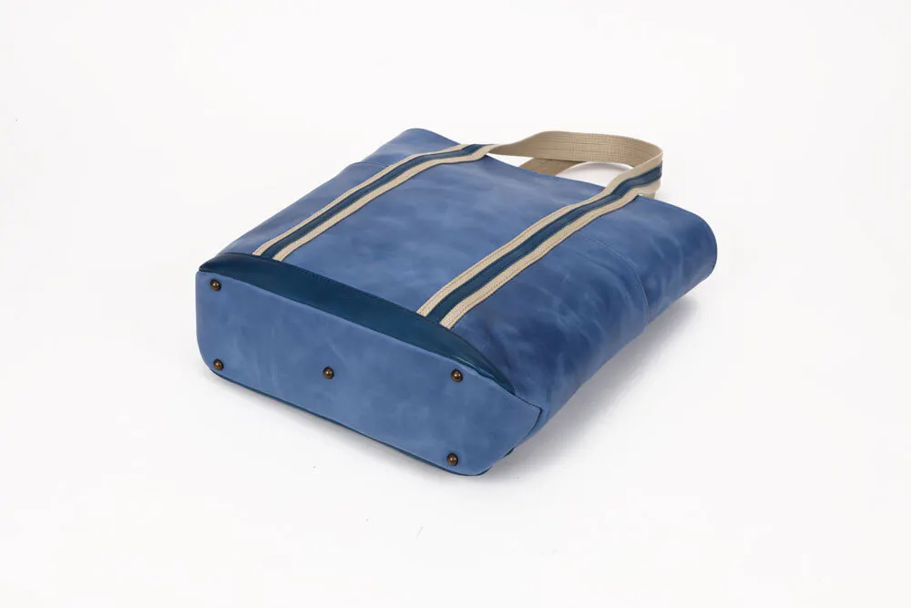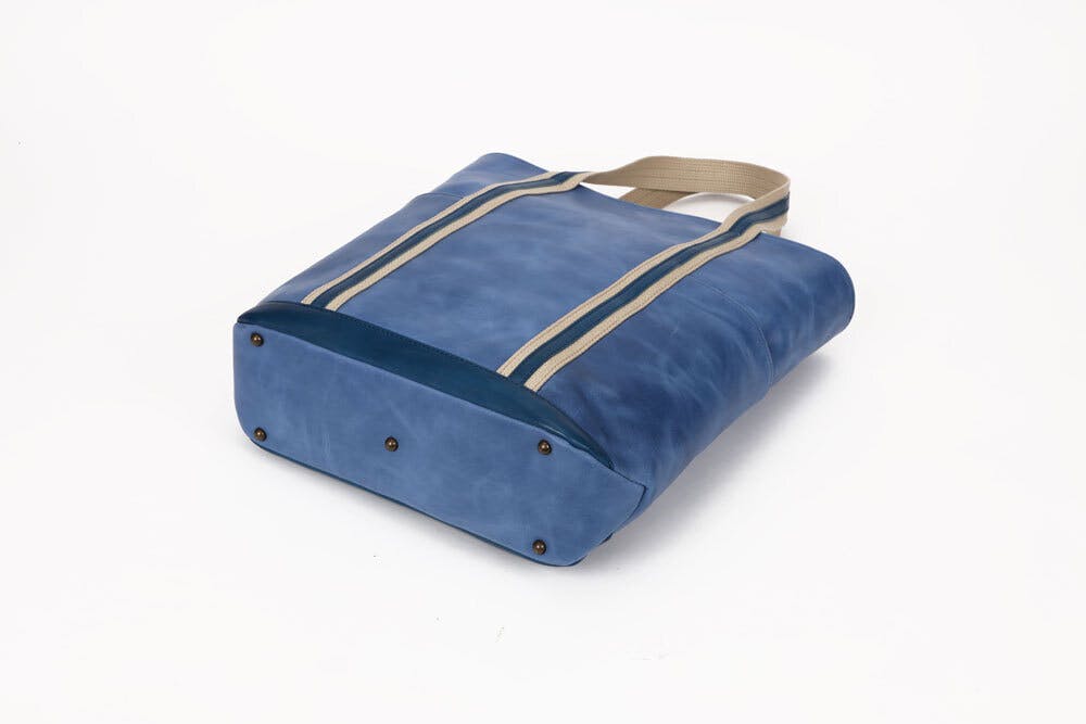 通常は底鋲は4つですが、重いものを入れたとき底の真ん中が凹み革に傷が付く恐れがあるので底の中心にも鋲を追加。