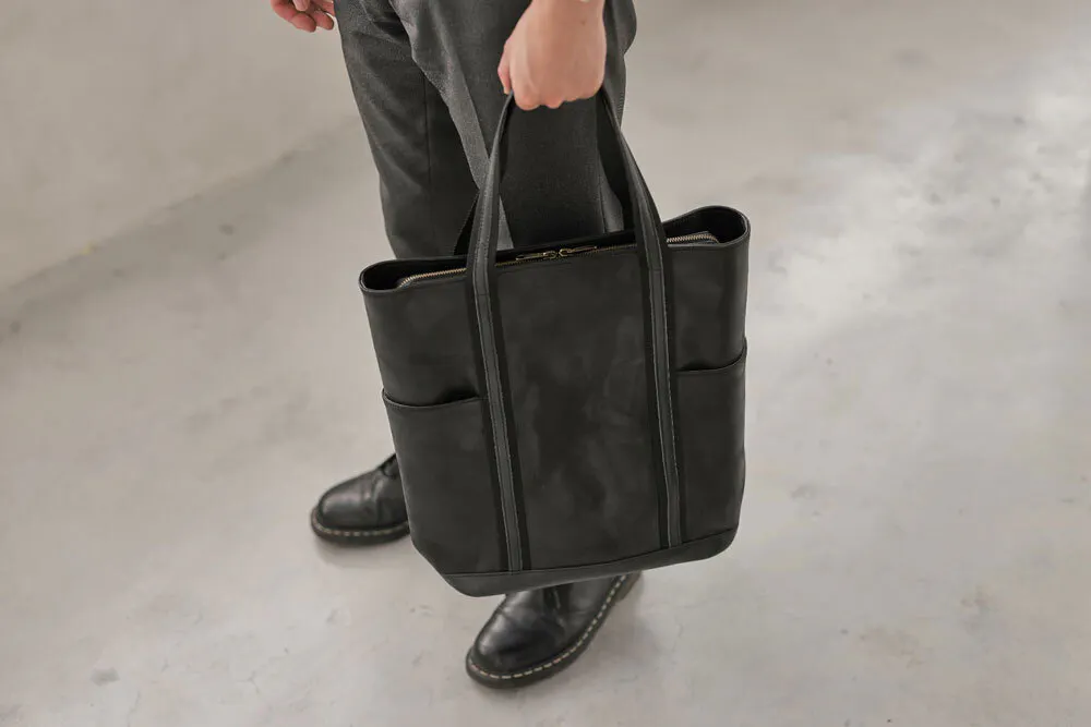 一般的なブリーフケースといえばナイロン製がほとんどで今や百貨店やセレクトショップでもなかなか牛革製のものを見ることが少なくなりました。今回のバッグは素材にもこだわり、上品なだけでなく、タフな雰囲気で使いやすさも兼ね備えました。