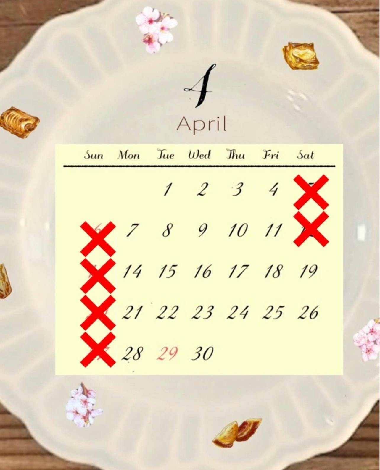 今月の営業カレンダーです
