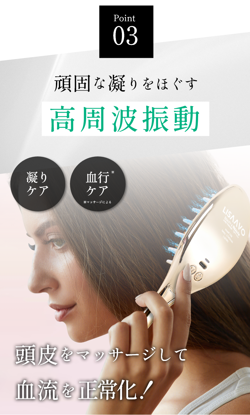 こうした悩みに対応するために開発されたのが、振動マッサージ、光療法、微弱電流刺激の機能を搭載した「多機能マッサージヘアブラシ」です。この製品は、忙しい日々の中でも、手軽に自宅で頭皮ケアができるように設計されています。振動マッサージは頭皮の血行を促進し、リラックス効果をもたらします。光療法は頭皮に優しくアプローチし、髪の健康をサポートします。そして微弱電流刺激は、頭皮の活性化を促し、髪の成長を助ける可能性があります。