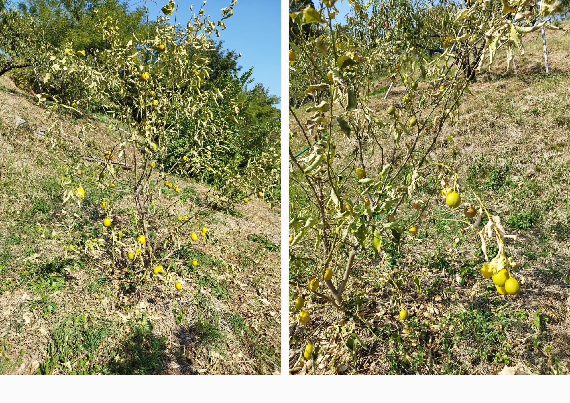 就農初年度の春先に植え付けて、順調に成長していましたが、その年の冬に猛烈寒波の影響で、ほぼ全ての木が枯れてしまう悲劇に見舞われました。そう、レモンは寒さに弱いんです。その後、自治体等の農業関係者へ相談した際、倉敷市としてはレモン栽培は推奨しない、との結論になったという話も伺いました。その時の寒波で全滅した被害が多発したようで、レモン栽培は不安定との理由です。やはり、広島の島嶼部とは気温の差であったり、寒気が溜まる土地条件等で劣後するのでしょう。
