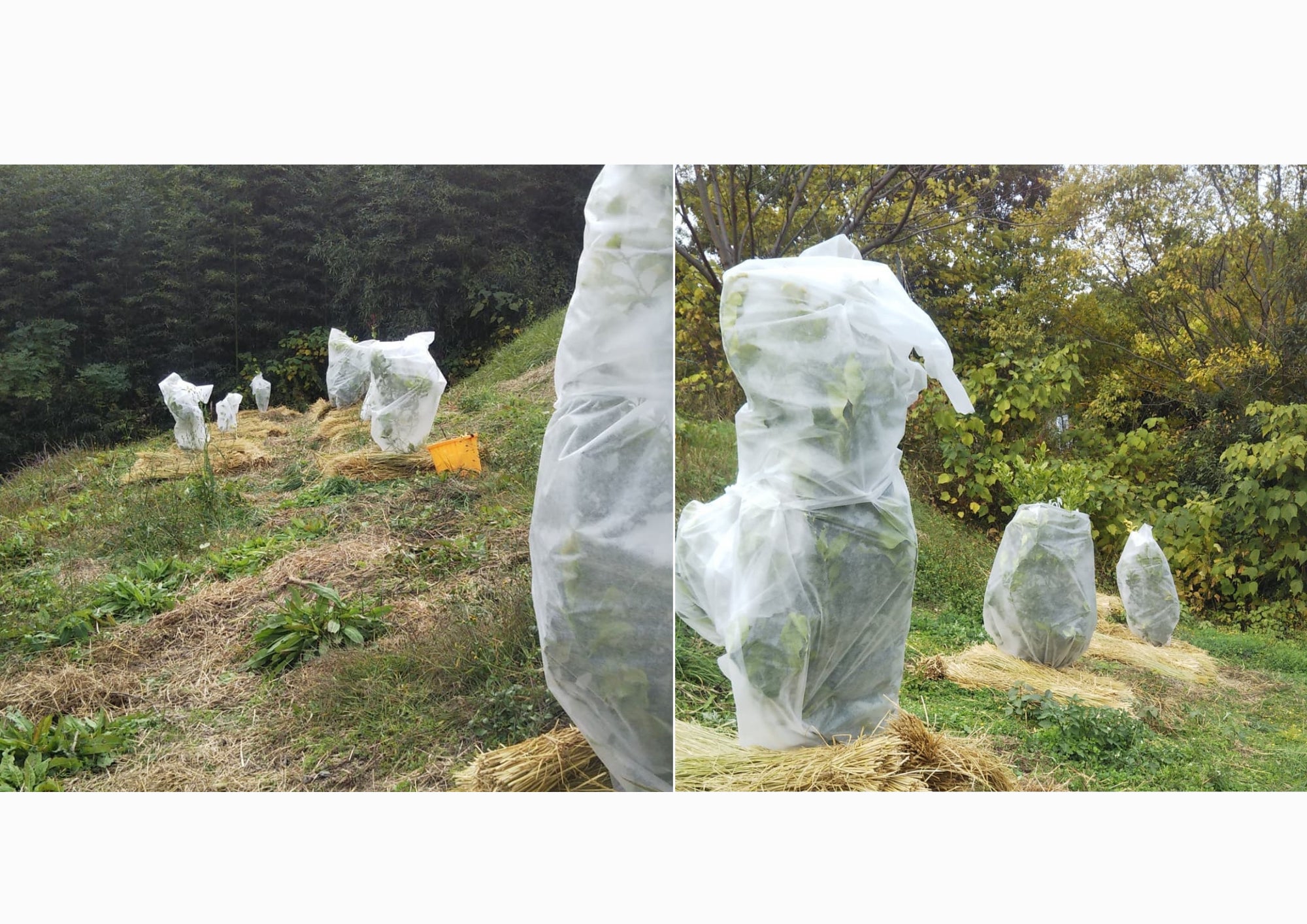 それでもあきらめきれないので、様々な防寒対策を行いました。敷き藁で根の凍結を防いだり、木全体を不織布で覆ったりと、1本1本地道に作業していきました。もちろん枯れてしまった木も、根本から切り戻したりして再生を試みました。その甲斐もあってか、枯れた木も再生し、植え付けた木も生き残るようになり、越冬することができるようになりました。そうやって徐々に栽培面積を増やすことに成功しました。