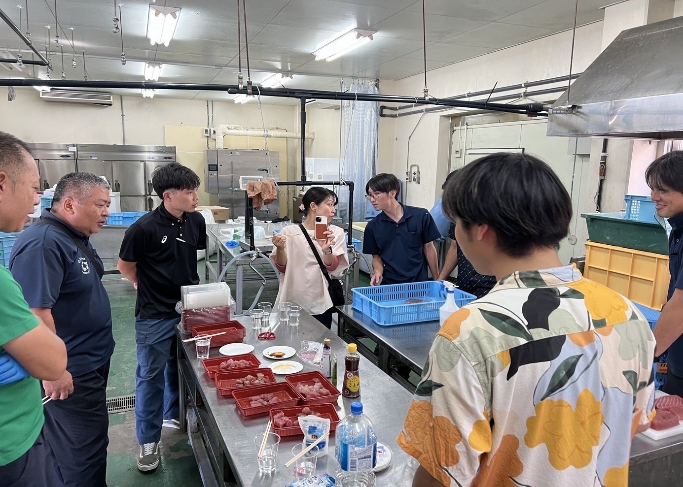 漁協さんの計らいで、CAS冷凍を用いて冷凍保存したマグロの試食会を開催して頂きました。 参加されたのは、マグロ漁師、宮古漁協の職員、宮古島市水産課の方々です。