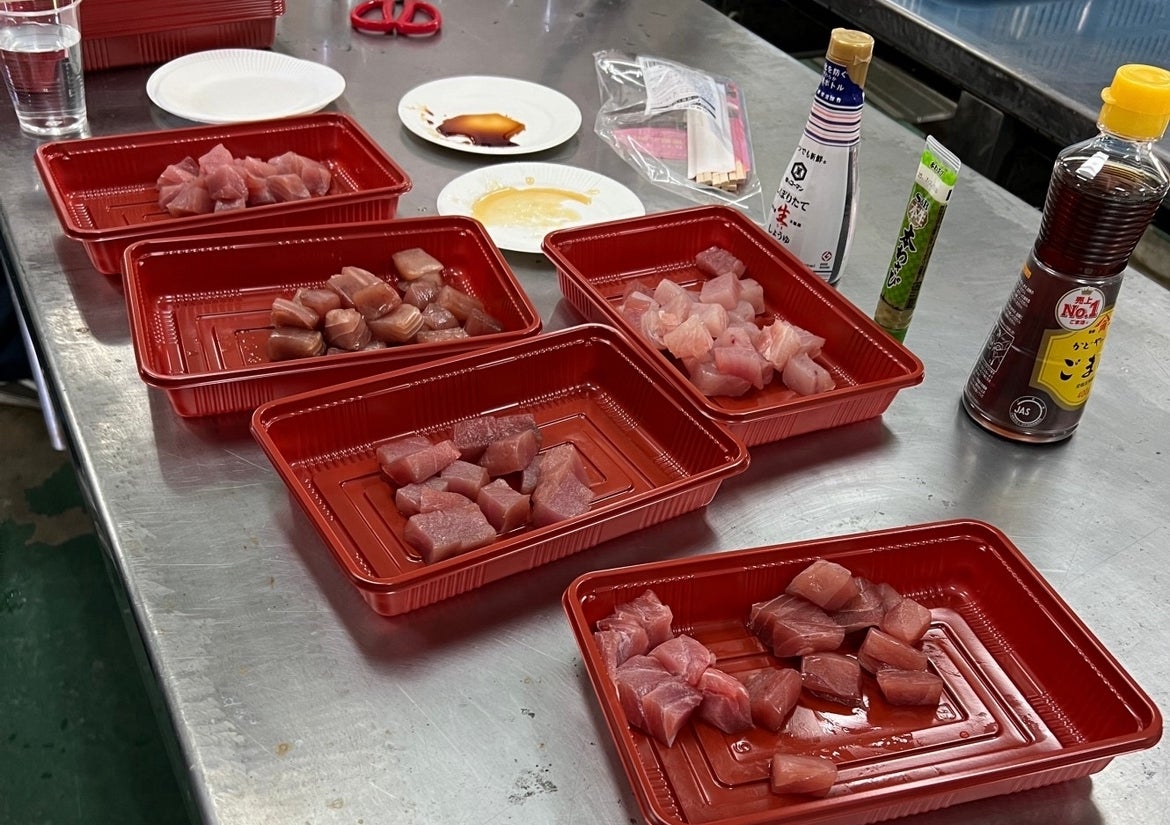切り方、解凍方法など複数のパターンを試食し、ポキに合う保存方法を話し合いました。長年マグロを追い、知り尽くした方々の貴重なご意見を頂けとても有意義な会となりました。