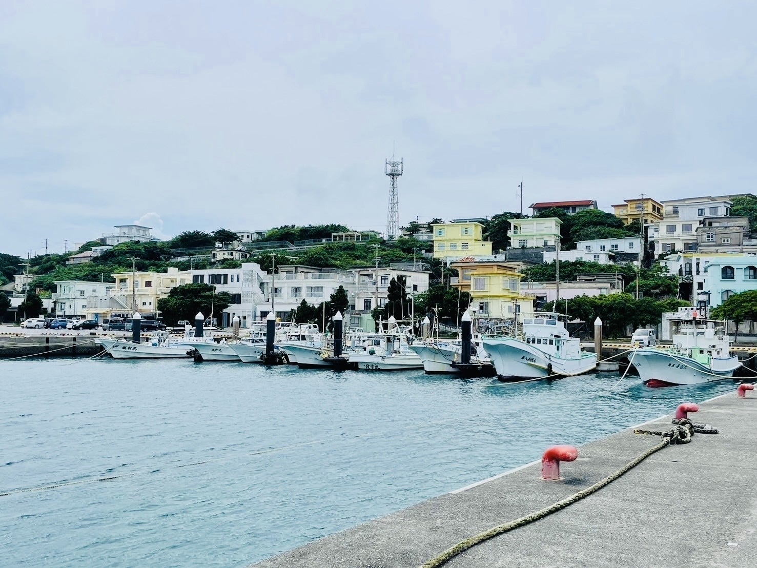 沖から港に戻る際、いつも見とれてしまう美しい街並みです。