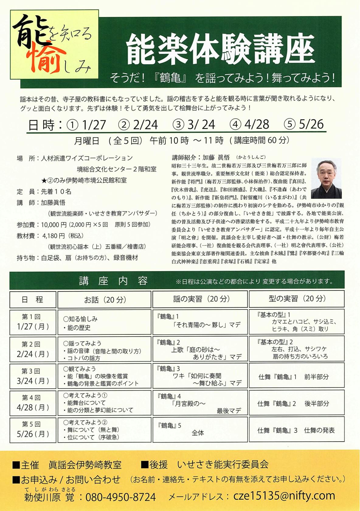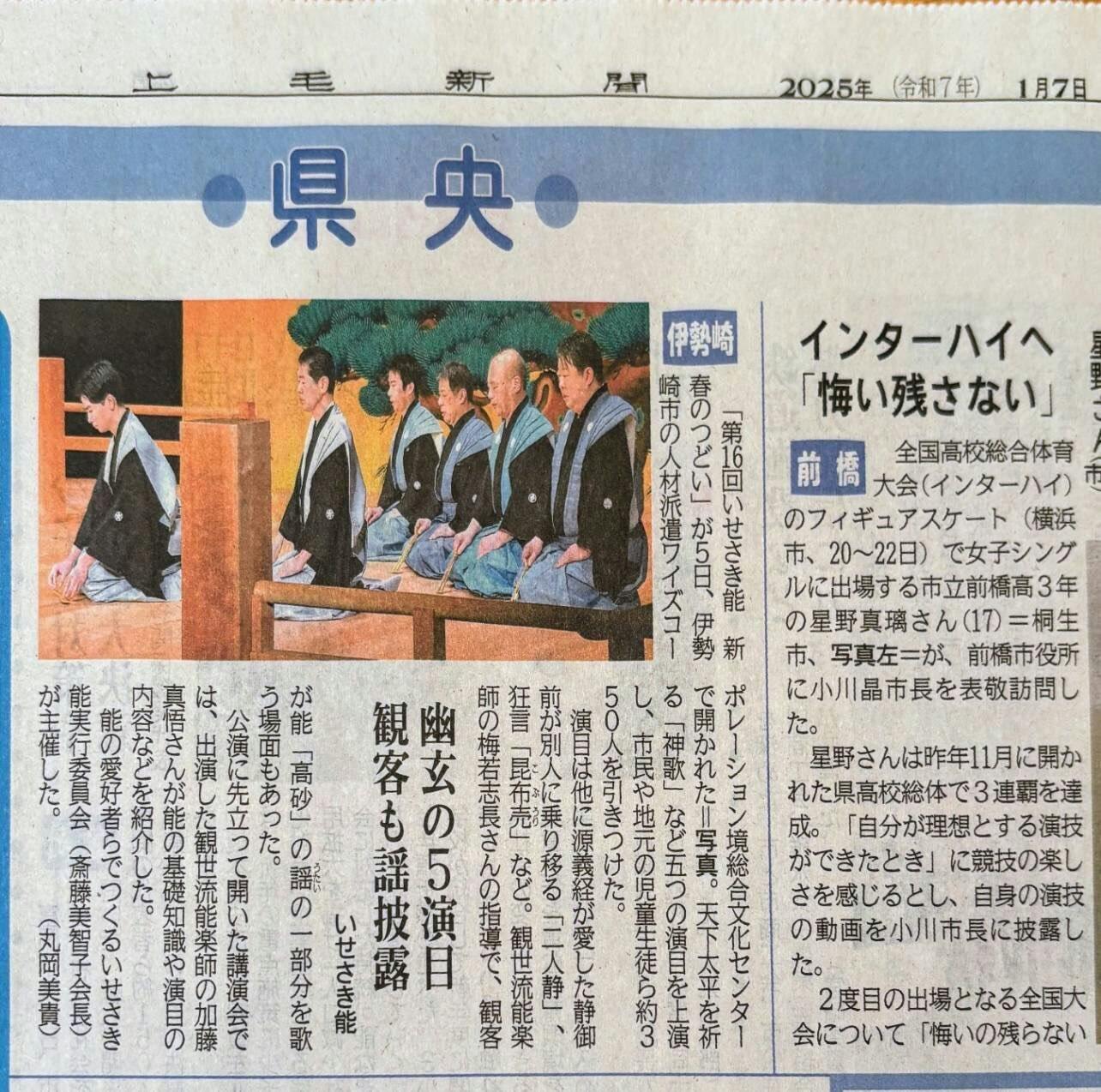 1月5日 第16回いせさき能 新春の集いを開催することができました。前回を上回る約350名の方にご来場いただきました。実行委員一同、心より御礼申し上げます。