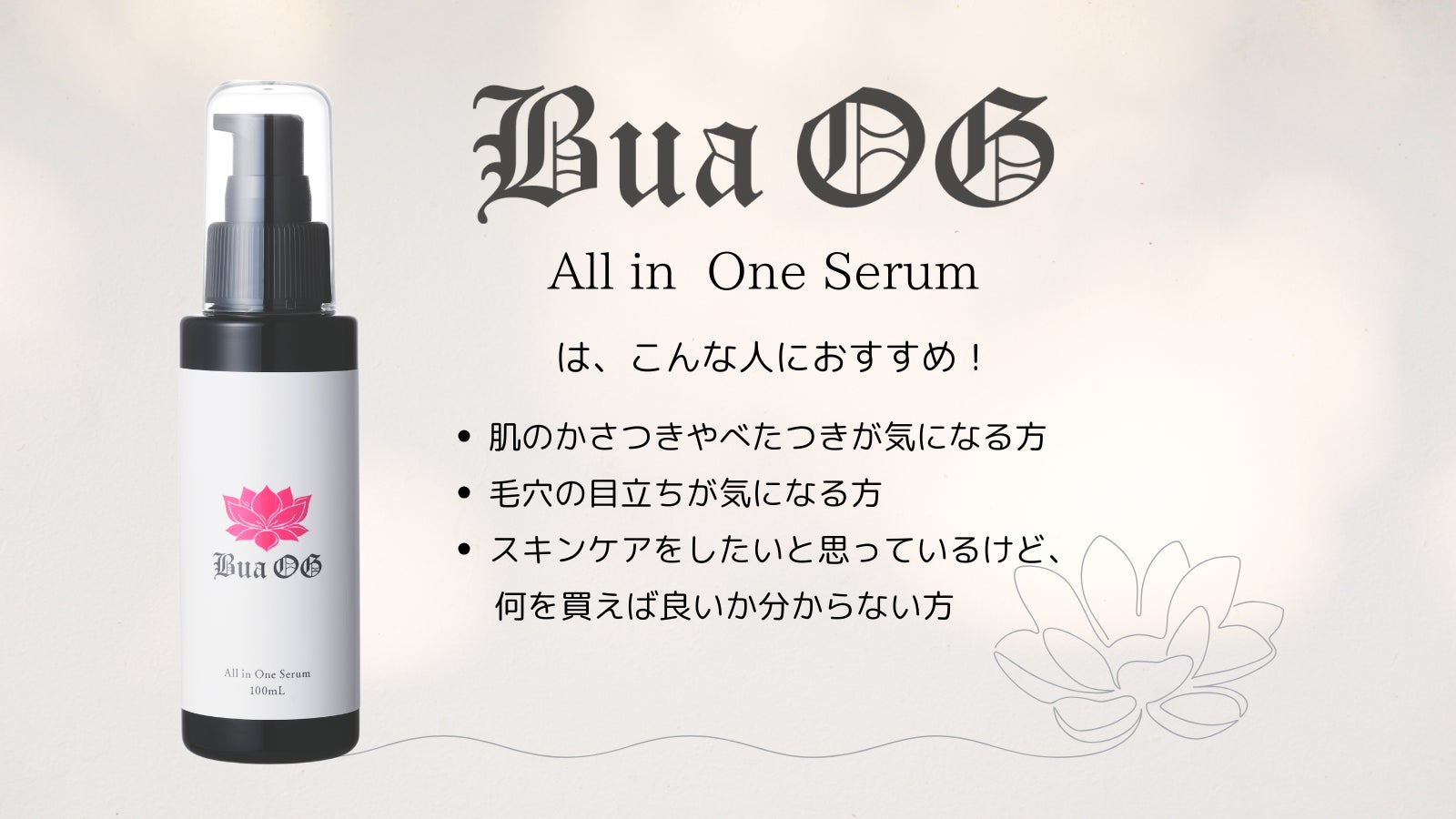 貴方の綺麗なオジ肌への第一歩は、1本完結のBuaOG オールインワンセラムで!