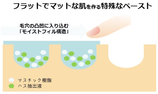 ハス花エキスが皮脂分泌を抑え、皮脂吸着カプセルがフラットかつマットな清潔感のある肌印象へ導きます。