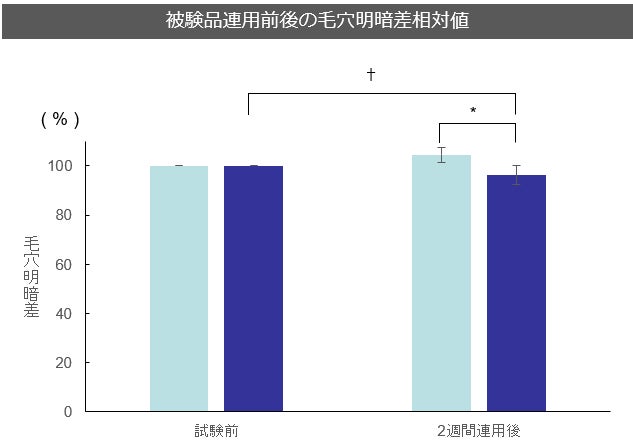 毛穴明暗差が低くなった、という結果を表しています。