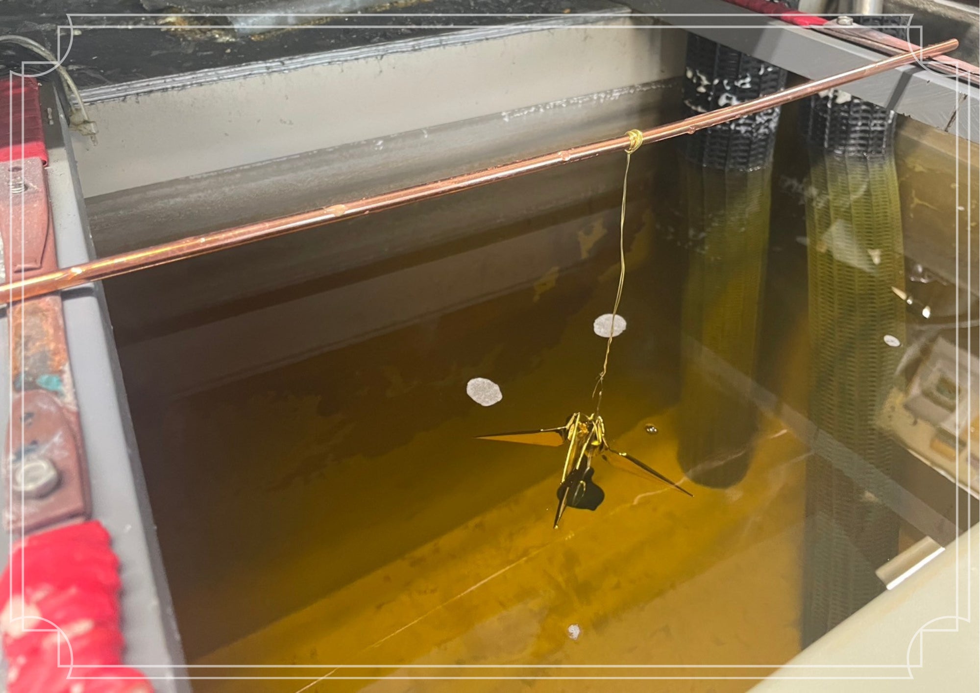 お世話になっております。 wimpsst0905と申します。 いくつか質問をさせていただきたく連絡させていただきました。 1.電気めっきの性質上、低電部へのつきまわりが悪くなってしまうことはございませんか。また、治具あたりなどが発生してしまいませんか。 2.ニッケルめっきが材料に含まれていますが、光沢ニッケルめっきを下地として光沢を出しているということでしょうか。もしくはつきまわりの都合などでストライクニッケルを処理しているということでしょうか。 3.銅板上の狙いの膜圧を教えてくください。鶴がデシ面積がいくつと想定して処理しているかも教えていただけたら幸いです。 4.2と被ってしまいますが、光沢材は金めっき浴に入っているのですか。 5.金めっき浴はシアン化浴かとお見受けしますが、使用している陽極の金板は24金でしょうか。もしくは18金でしょうか。 以上となります。 ご返答頂けますと幸いです。 様々な方が協力している事が伝わる素晴らしいプロジェクトだと思いました。 頑張ってください。