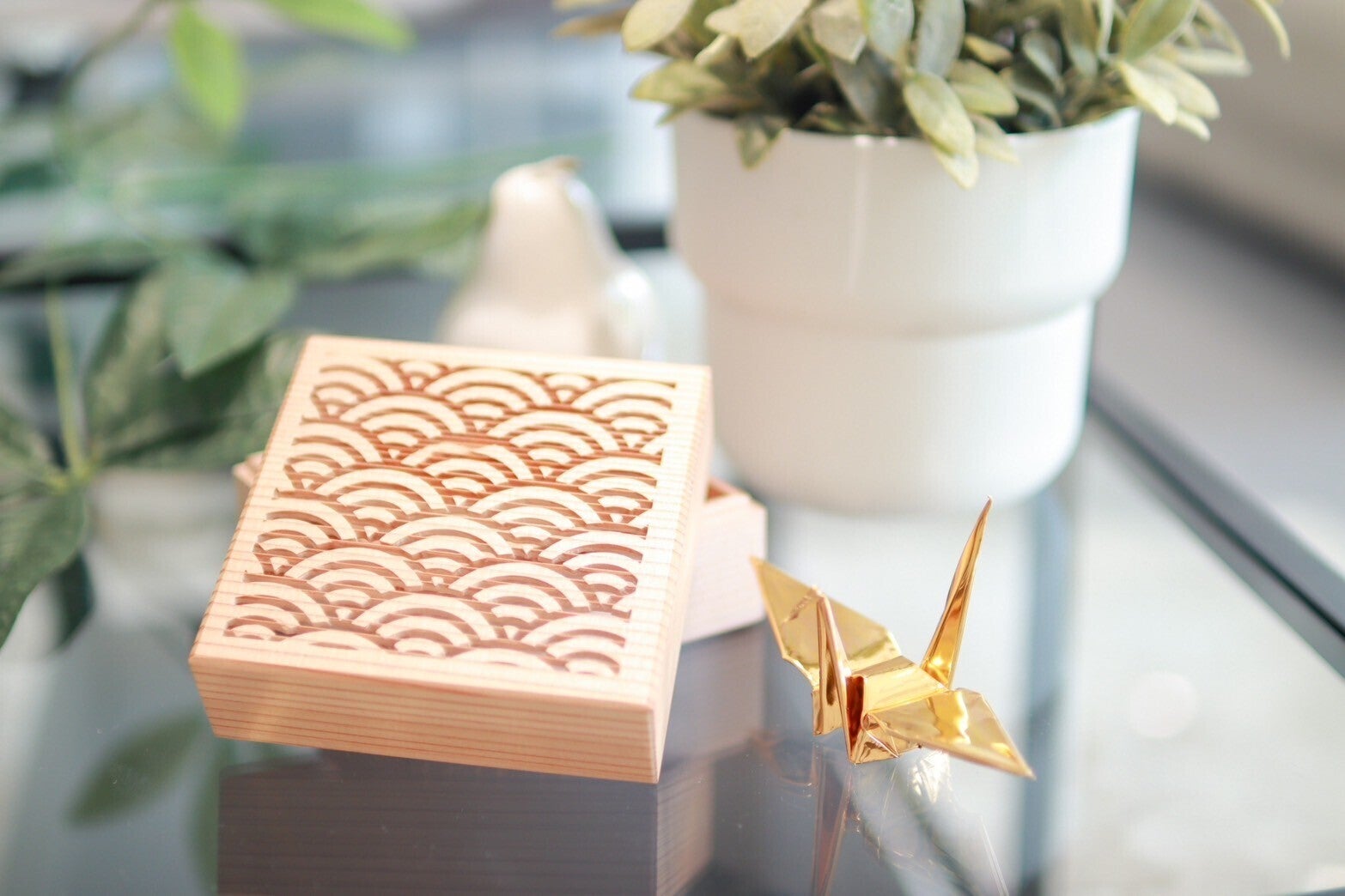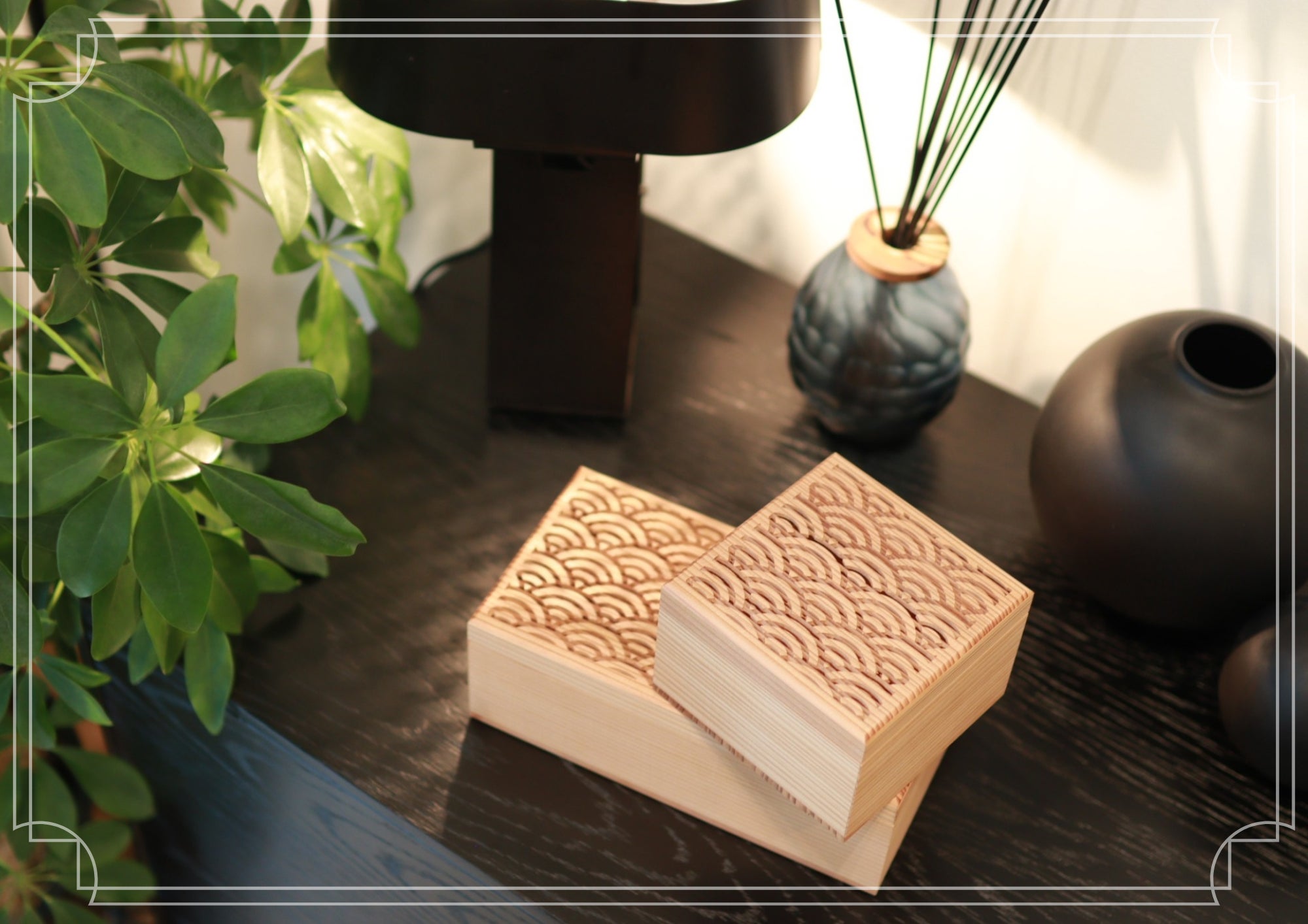また、箱に施された模様は「青海波」といい古来より縁起の良い模様として知られています。