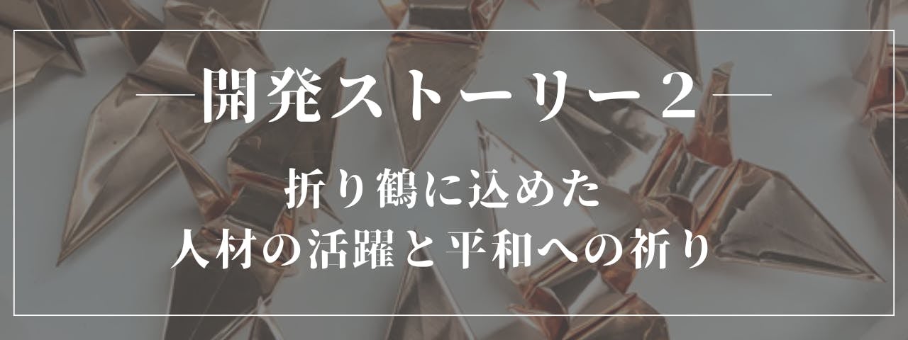 また、プロジェクトには多くの方が協力いただき、めっき職人だけでなく、商品を企画した大学生や、折り鶴の制作に携わる障がい者の方などの様々な想いが折り鶴に込められています。