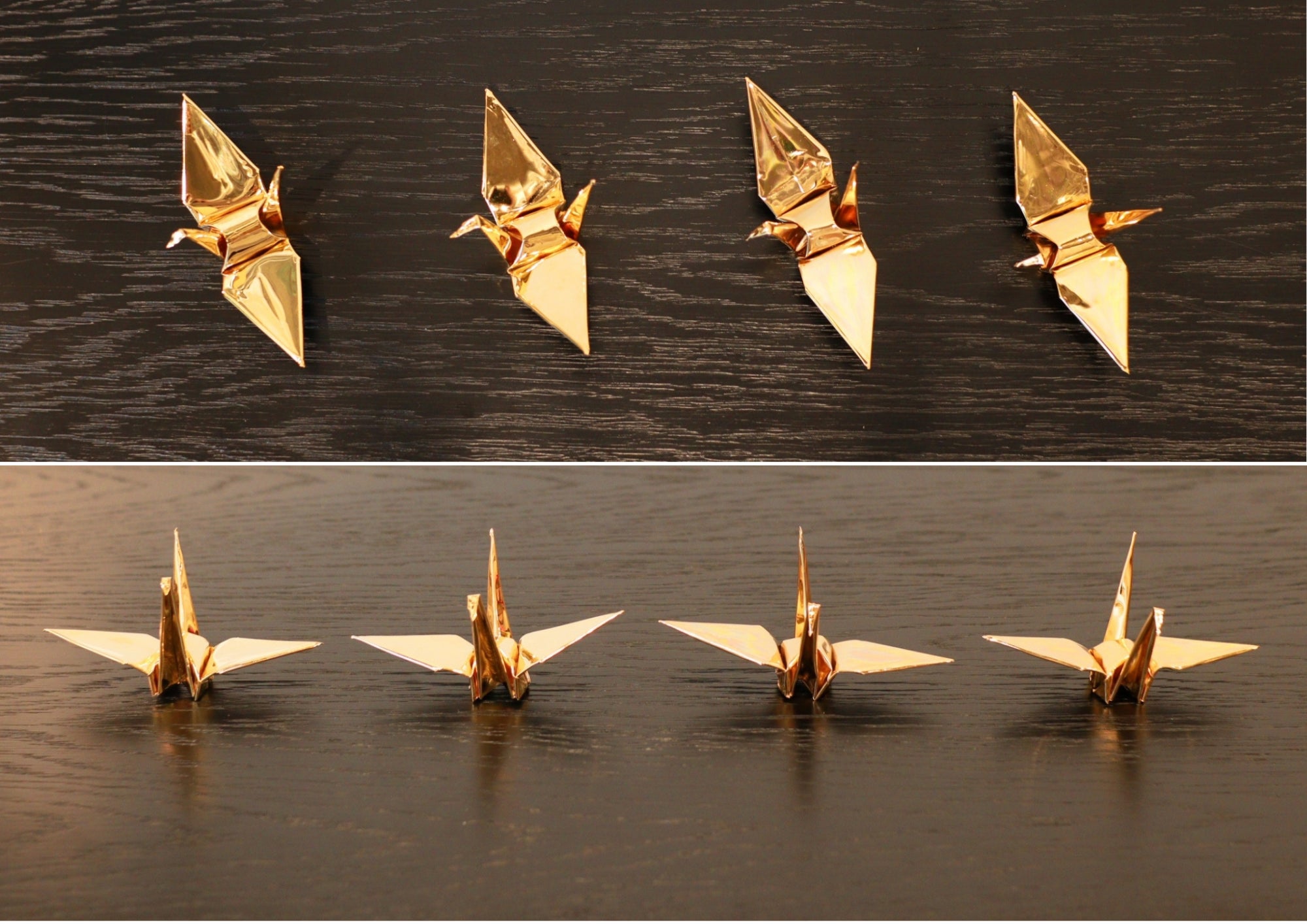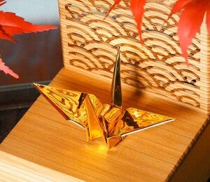 卓越しためっき技術をもつ老舗企業による「幸せを呼ぶ金の折り鶴」
