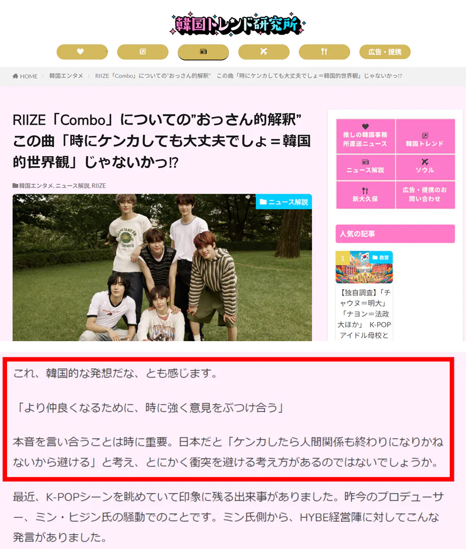 今の日本のK-POPメディアの多くは「韓国の新聞記事を翻訳して伝えている」という形態がほとんどだからです。