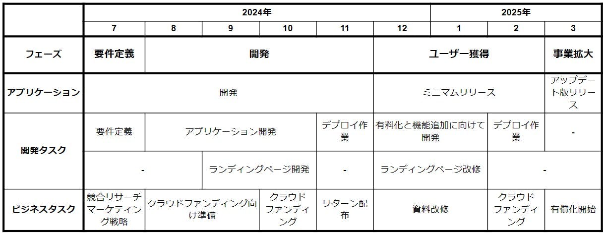 10月からクラウドファンディングを開始し、集まった資金を利用して11月の初めにサーバーへのデプロイを行います。11月の後半にはクラウドファンディングにて支援していただいた方へのログインを可能にして、12月1日に初期リリースを行います。