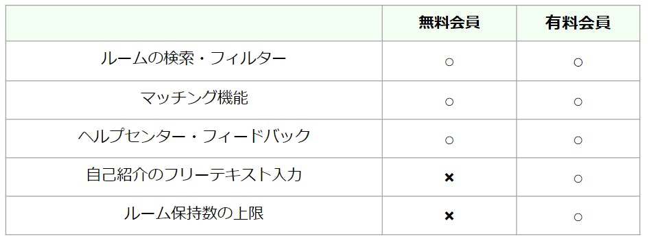 有償化した際の、無料会員と有料会員の比較は以下のように予定しております。