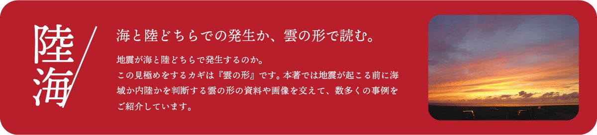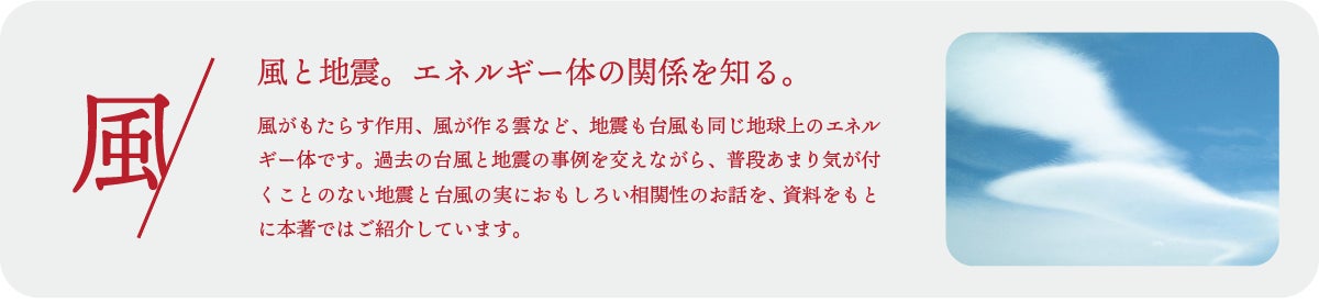 本著では20年にわたる観察から見えてきた様々な事例をもとに、地震と空、自然現象との繋がりを紹介すると共に、誰でも地震を予知する事が出来る知識と方法を紹介しています。