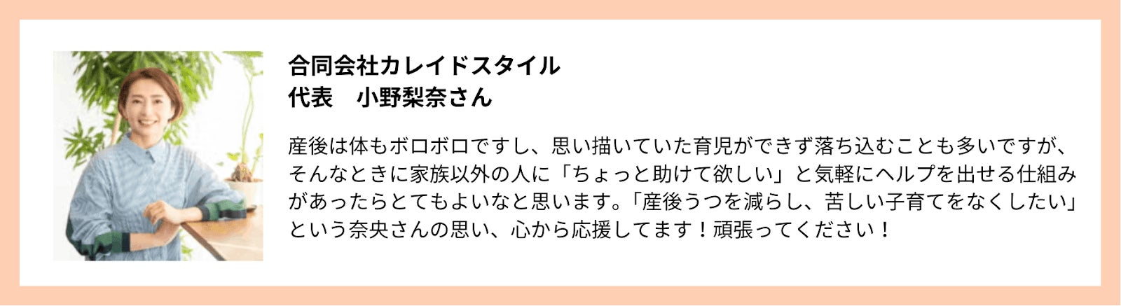 後に産後うつとわかり、冒頭の「もうこんな辛い思いする人減らそう!」という気持ちで、「相談」「交流」「学習」の3軸でのメンタルケア事業を始めました。