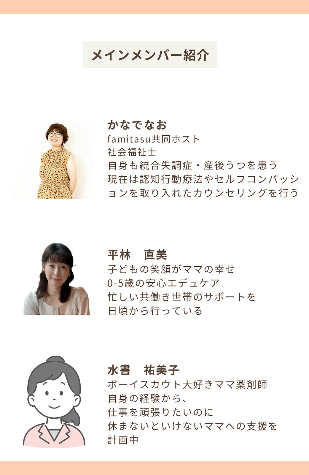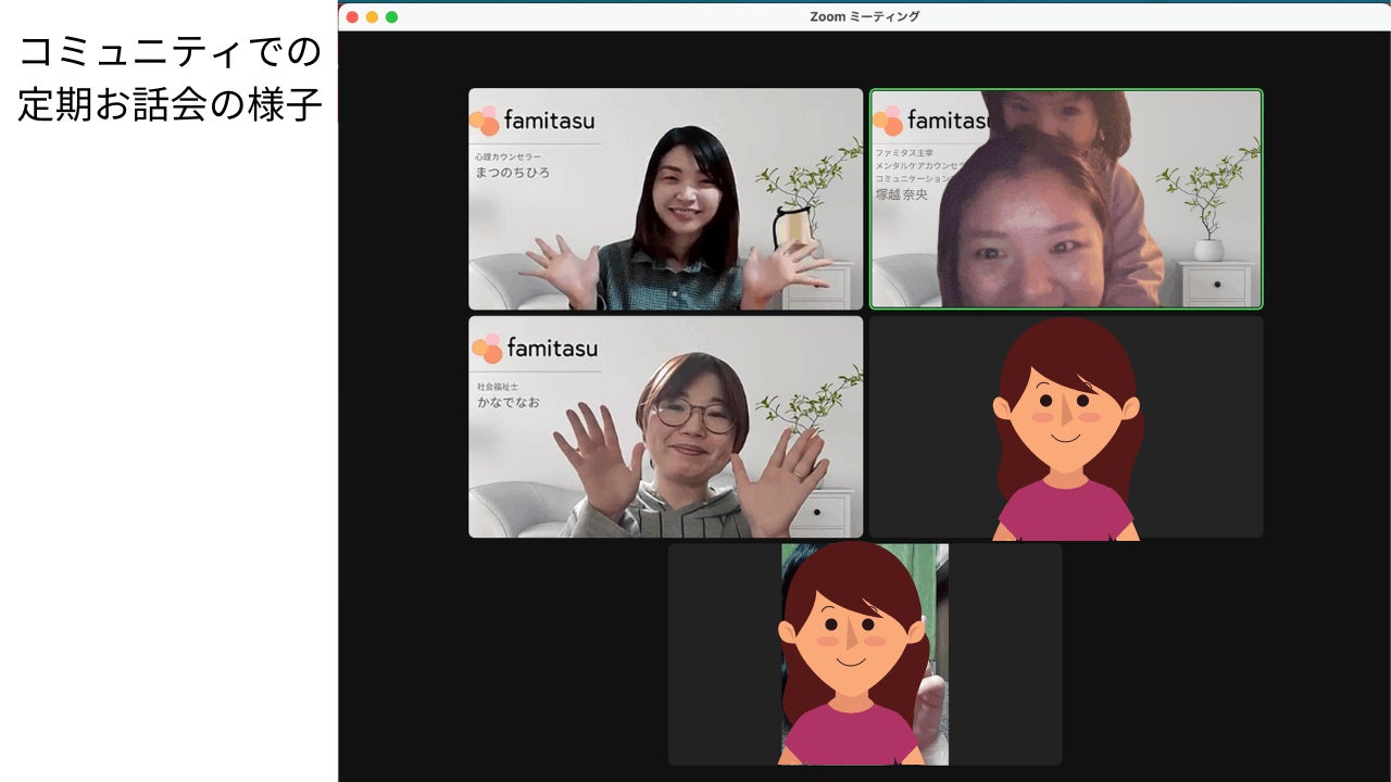 普段は、"家族のメンタルケア"をテーマに「famitasu(ファミタス)」というWebメディア&オンラインコミュニティ・オンラインカウンセリングを運営しています。