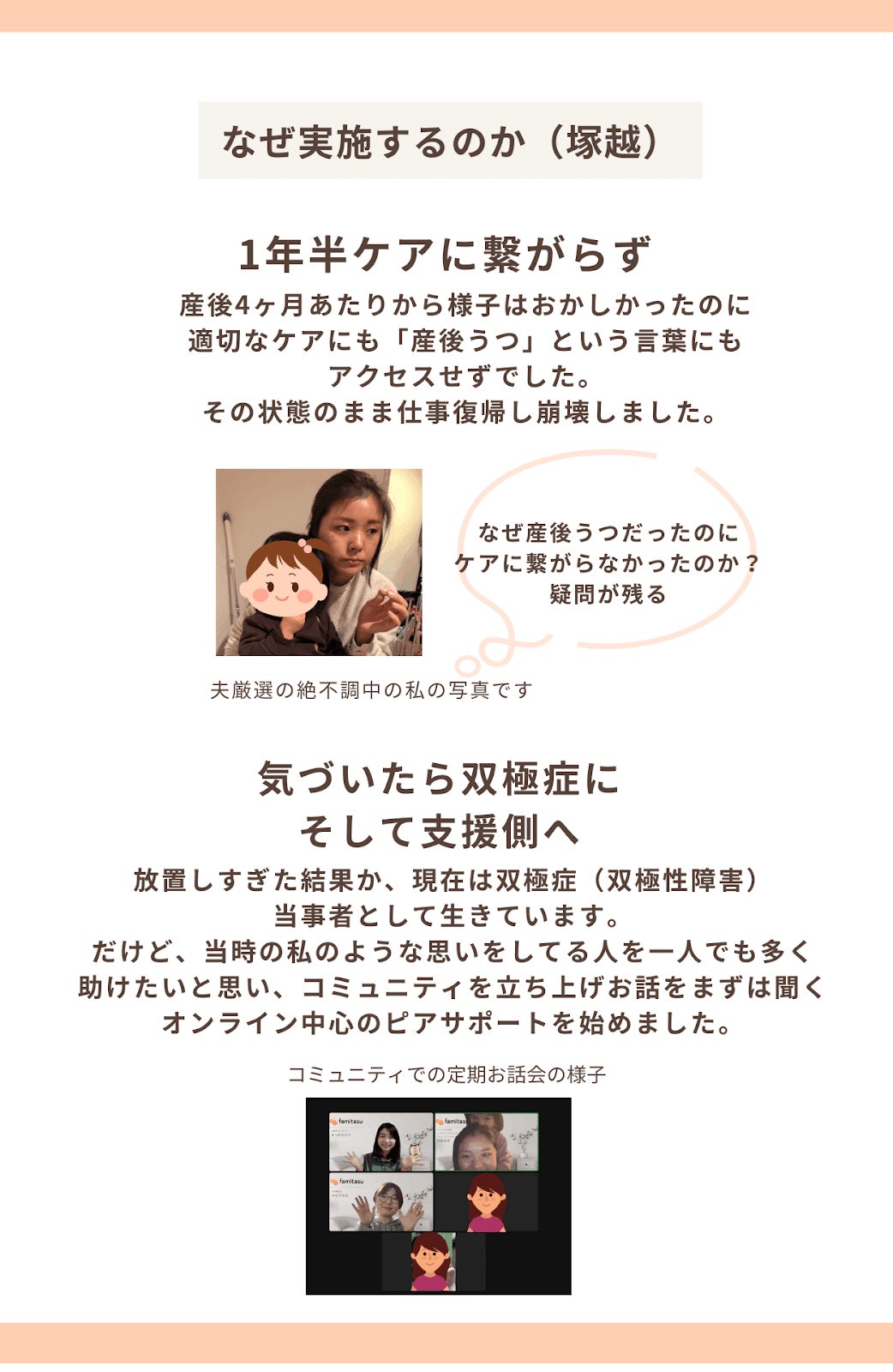 初めまして!周産期メンタルヘルス実行委員会代表の塚越です。