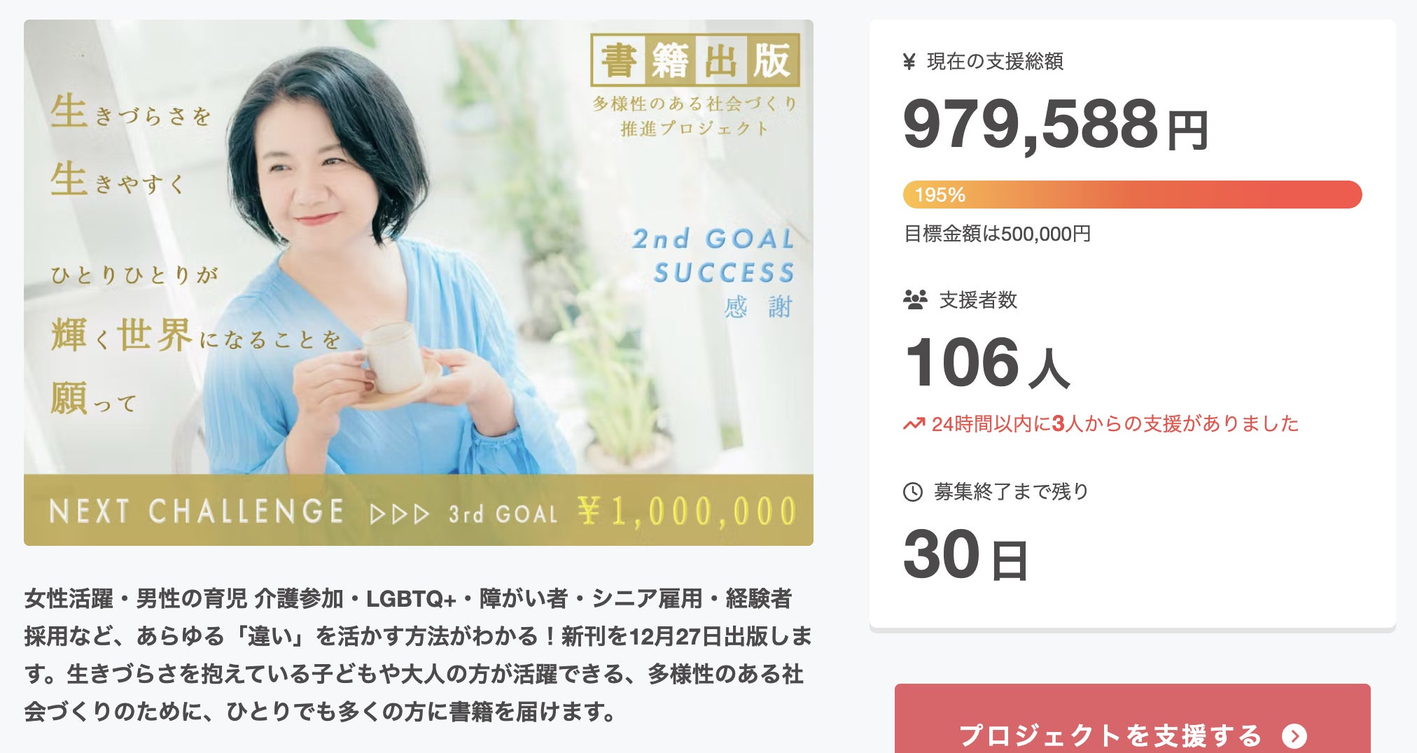 現在、106名の方にご支援いただいております。