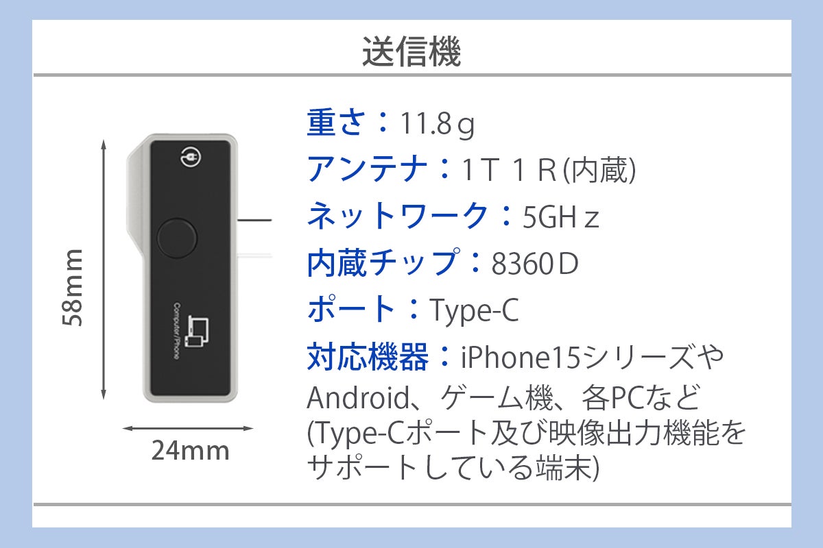 「ミラーリングアダプター」の送信機はType-Cポートを、受信機はHDMIポートを搭載。