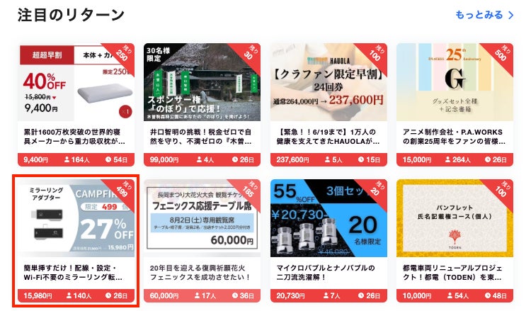 本日、「ミラーリングアダプター」は注目のリターンで紹介して頂きました!!