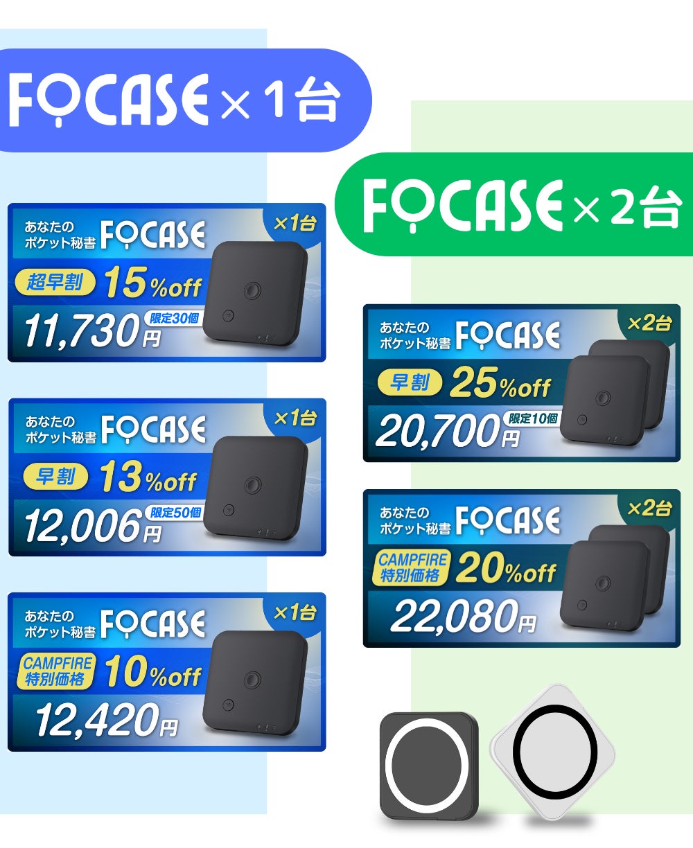 先日、先行販売を終えた「FoCase」超薄型AIボイスレコーダーは、話題を呼び先行販売開始初日から大盛況で、わずか1か月ほどの販売期間でしたが、おかげさまで、支援者数660人、支援金額が800万円を超える大成功を収めることができました!皆様の温かいご支援に心より感謝申し上げます。