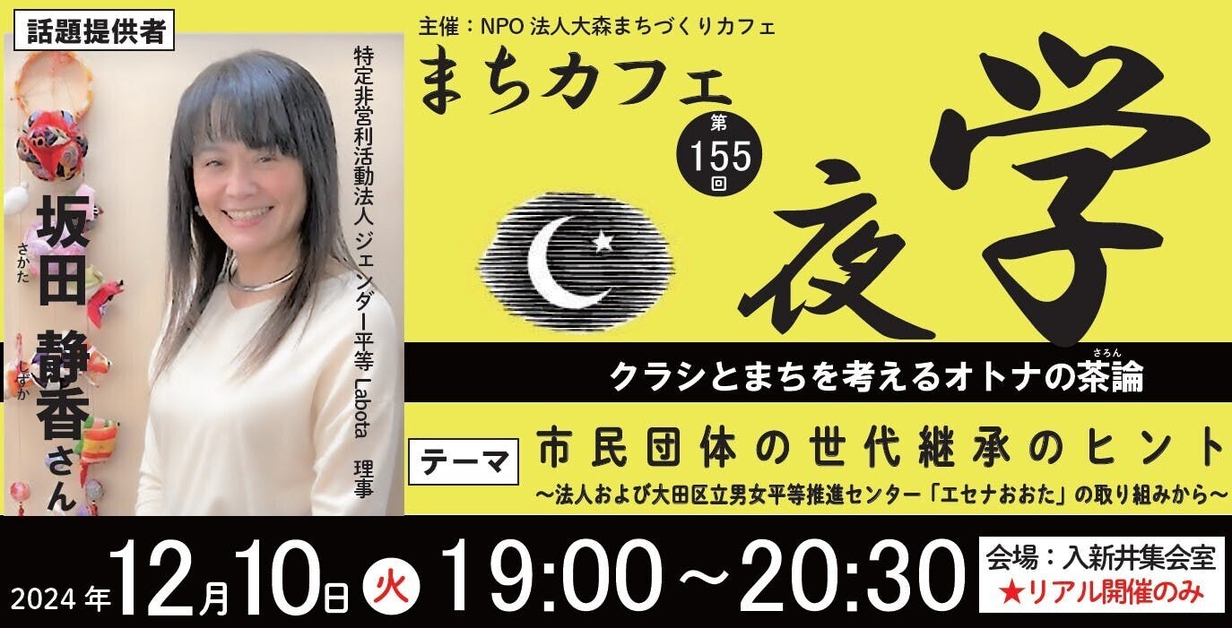 ご支援いただきまた坂田静香さんが話題提供する勉強会が開催されますが、