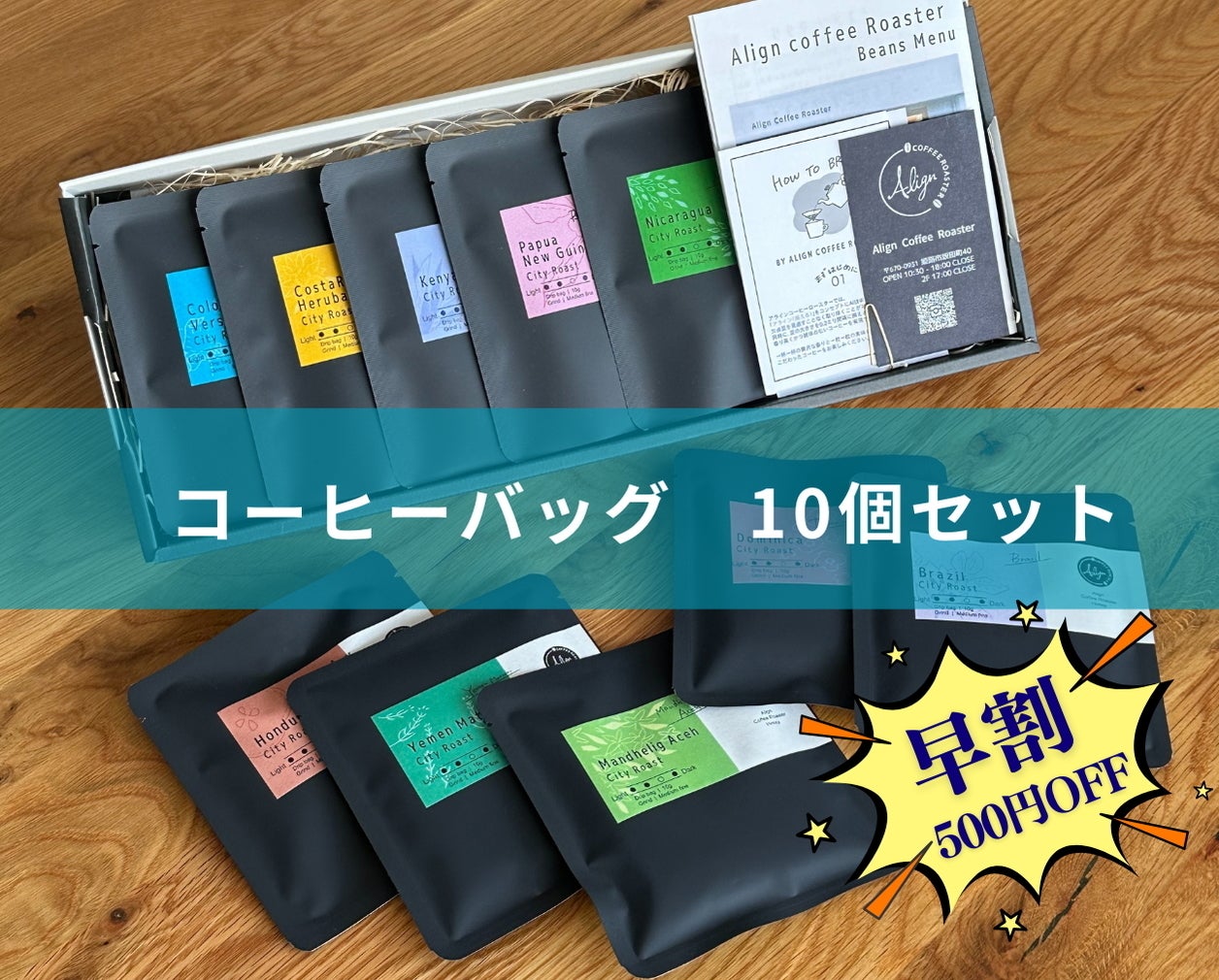 個性の異なる3種類のコーヒー豆50gずつと、生産農園のご紹介カード、Align Coffee Roasterオリジナルステッカーをお付けいたします。