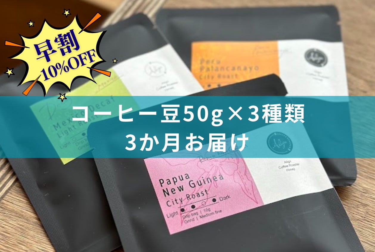 【コーヒー豆50g×3種類を3か月連続でお届け】