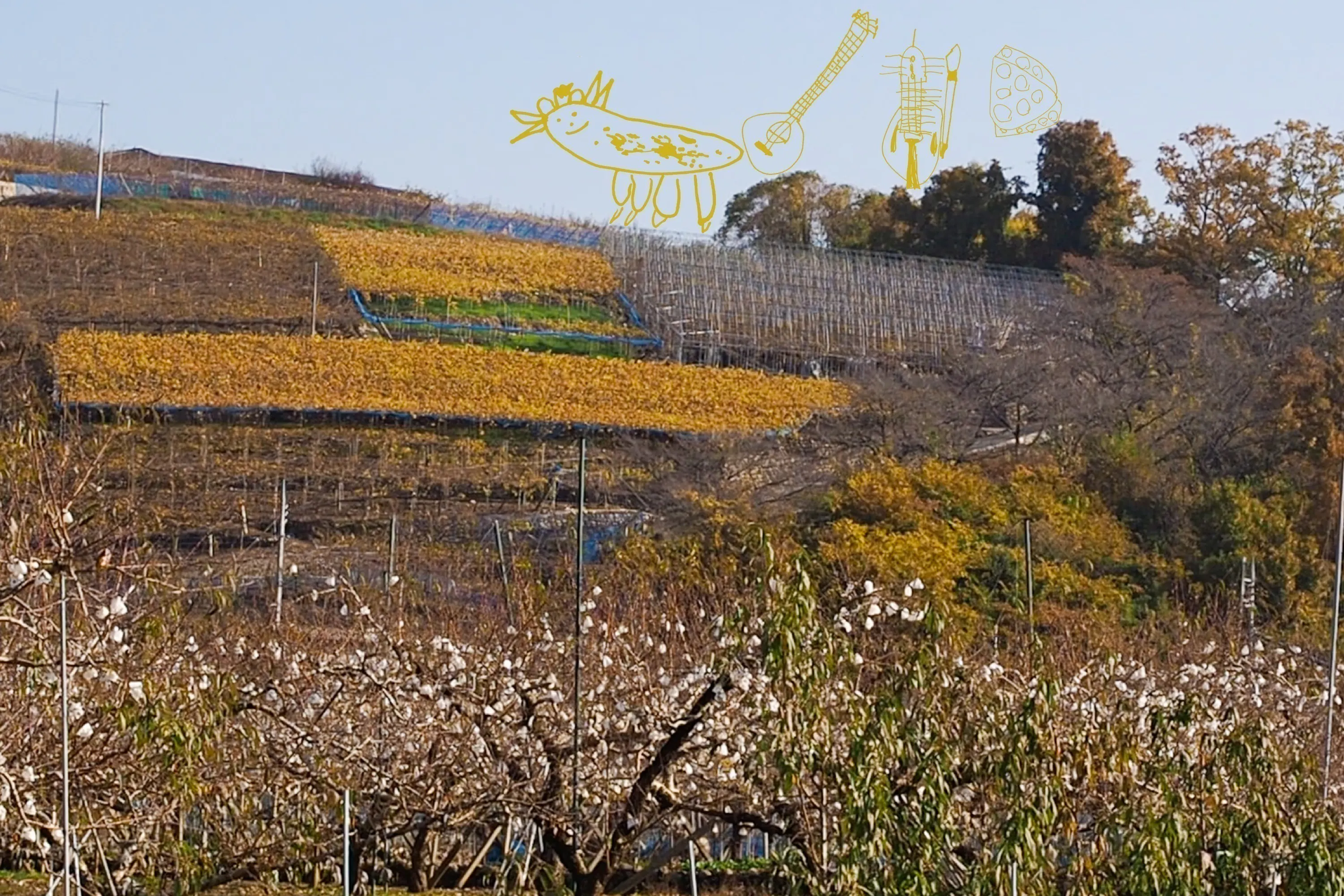 山梨市といえば、葡萄や桃などの果物、大自然や農業風景、温泉、そしてワインがある街です。