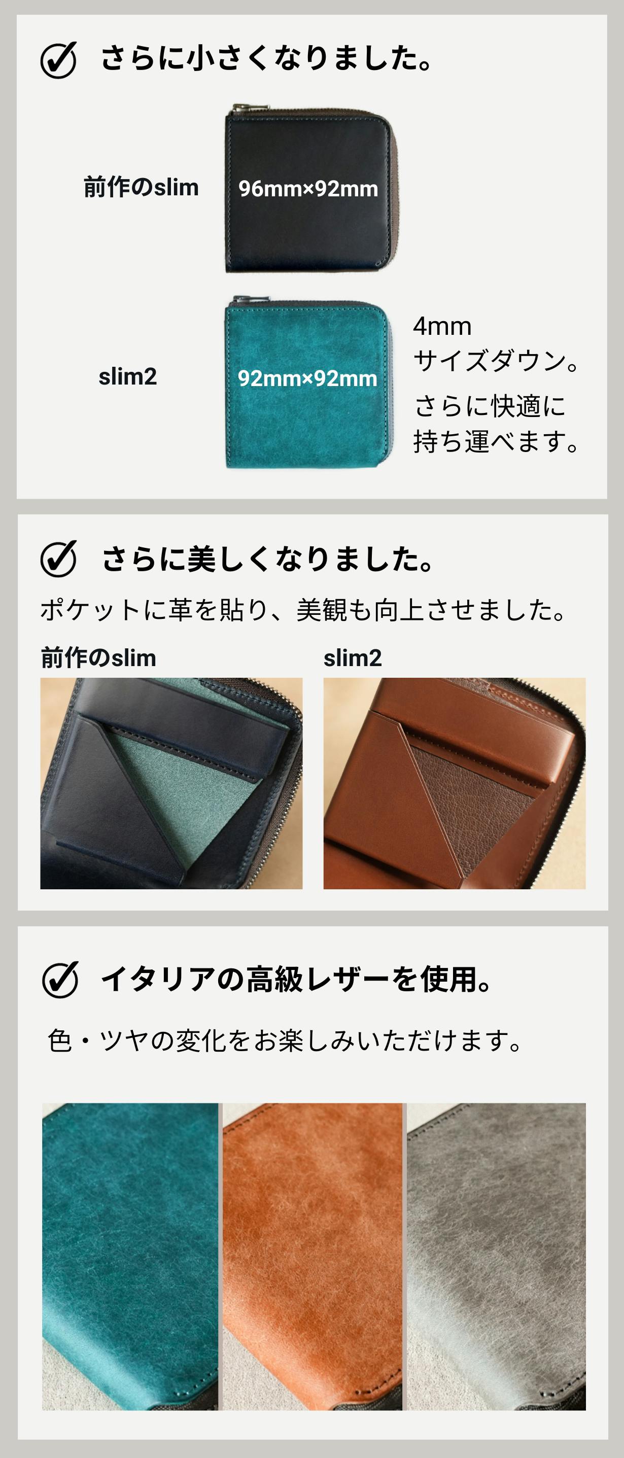 前作の「薄くて使いやすい財布 slim」では、ご好評をいただきありがとうございます。