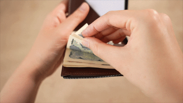 お金やカードを出し入れする順番が変わっても、財布を傾けたり、持つ位置を変えたり、ポケットを開けたり、覗き込んだりするアクションはありません。すべてをスムーズに出し入れできます。