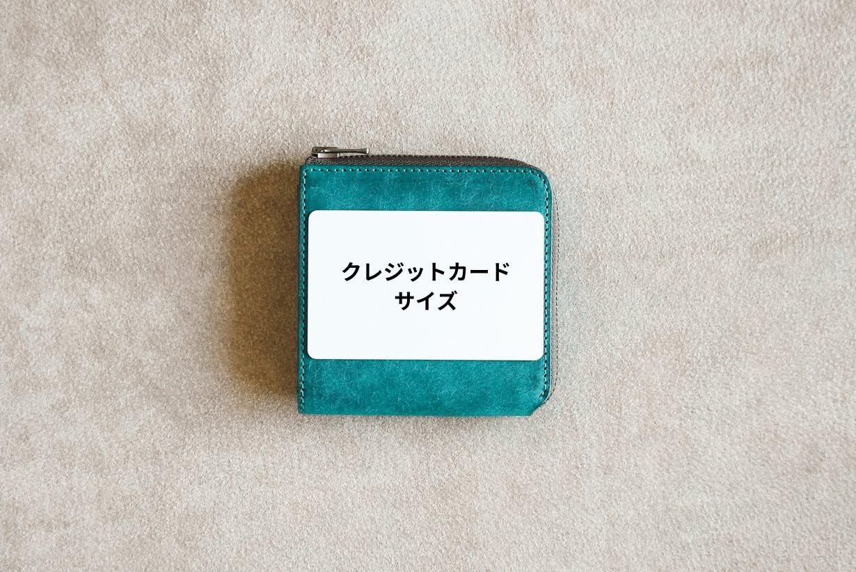 ほぼカードサイズ(92mm × 92mm)。最小クラスの二つ折りファスナー財布です。