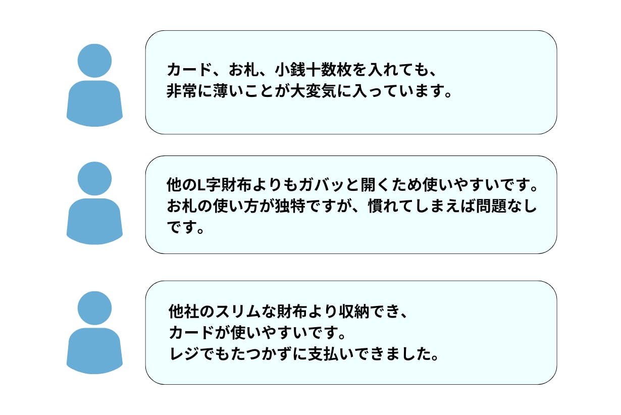 これまでの財布は「カードポケットに沿わせて、真っ直ぐ、慎重に出し入れすること」を求められていました。カードが引っかかったり、ぶつかったりとストレスを感じていたはずです。