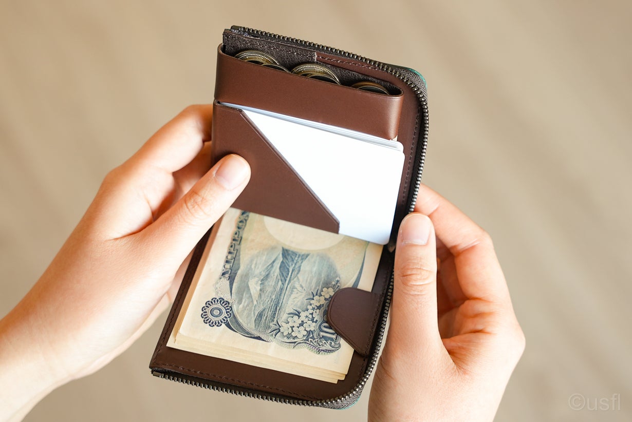 slim2は、カードもお金も一目瞭然。開いた瞬間、見えるようにデザインしています。