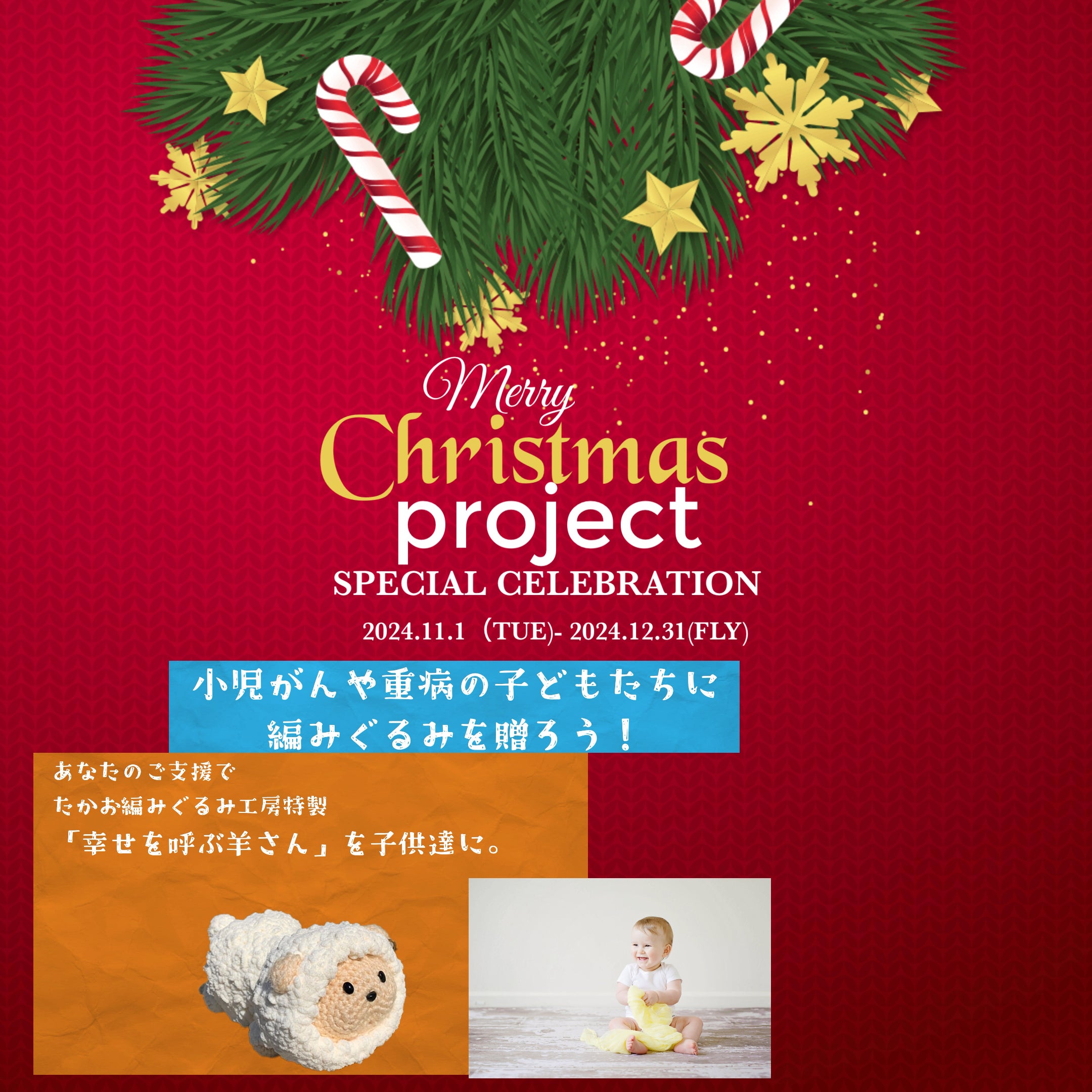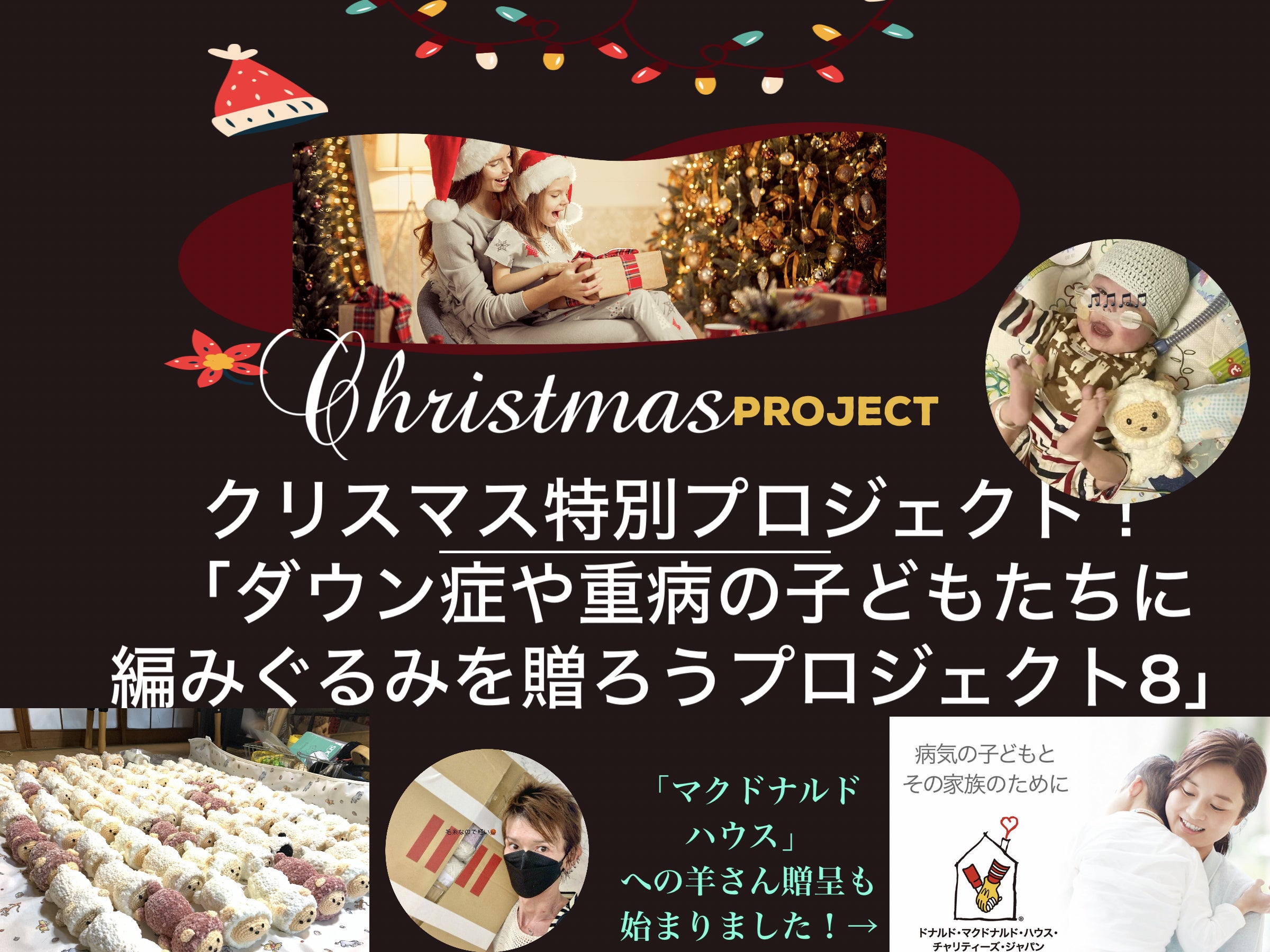 ・2024年11月〜12月末 「UL316」と「マクドナルド・ハウス」を通してダウン症の子どもたちに編みぐるみを贈ったり、その日に活動内容を報告します。