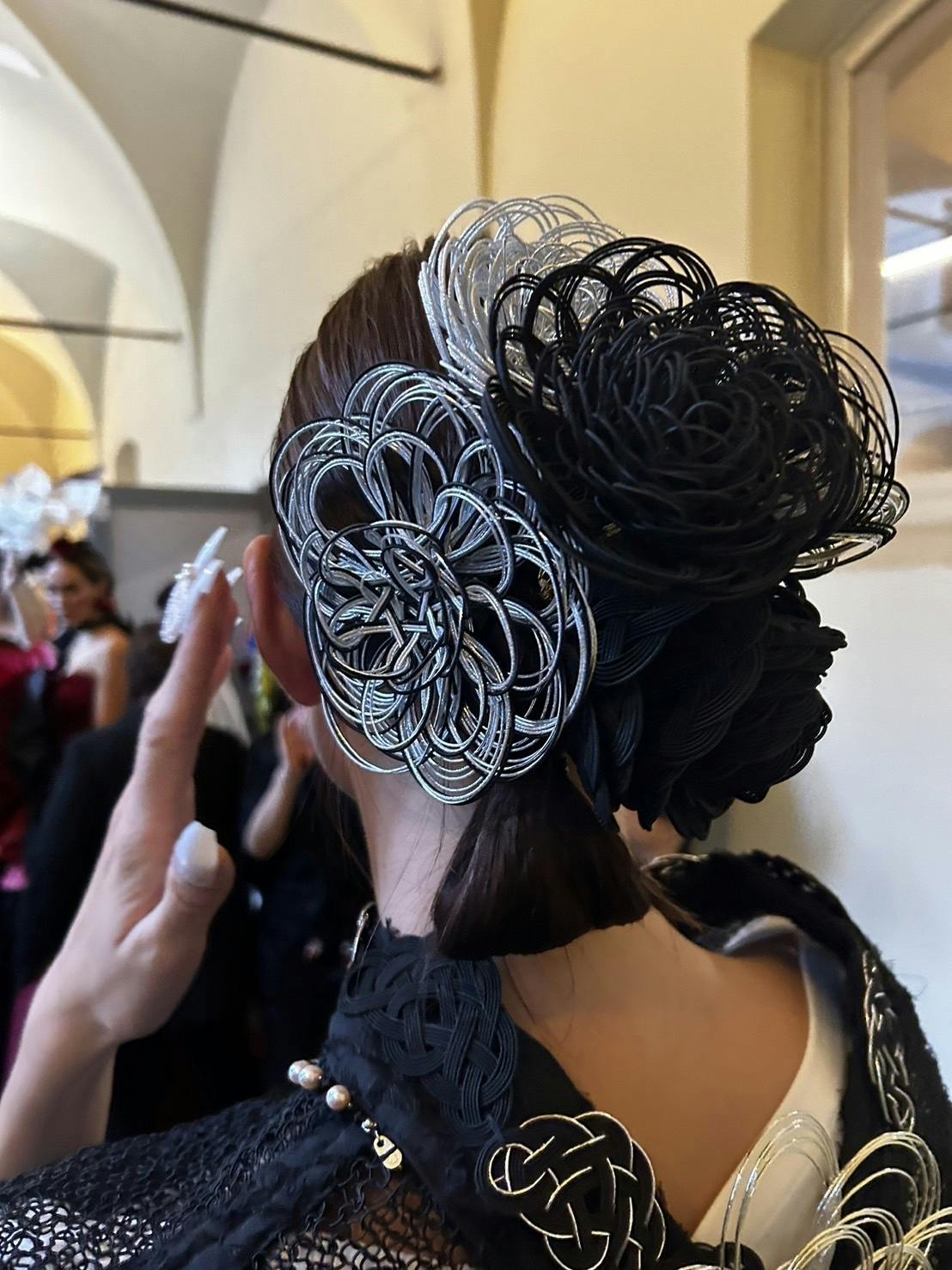 髪飾りは黒と銀をメインに。