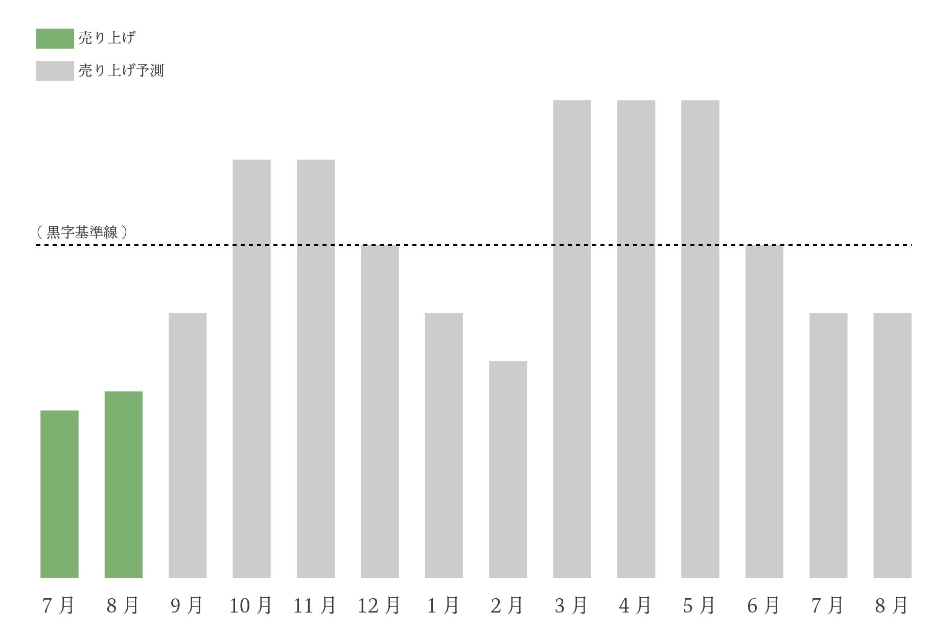 改めて売り上げの予測を立てたときに、10月11月の売上でこれまでの赤字と