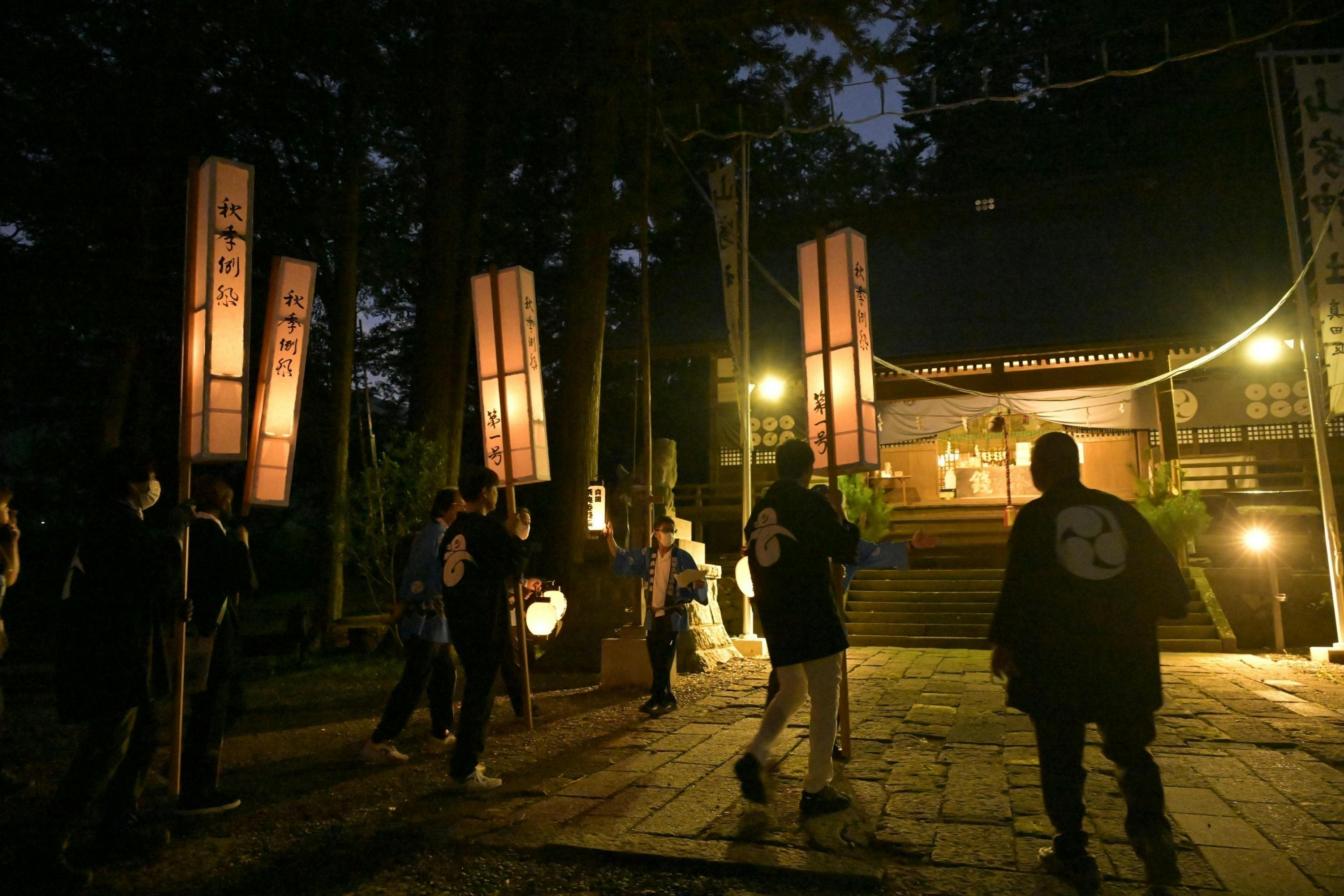 地域の人による12本ある灯篭持ち役の負担