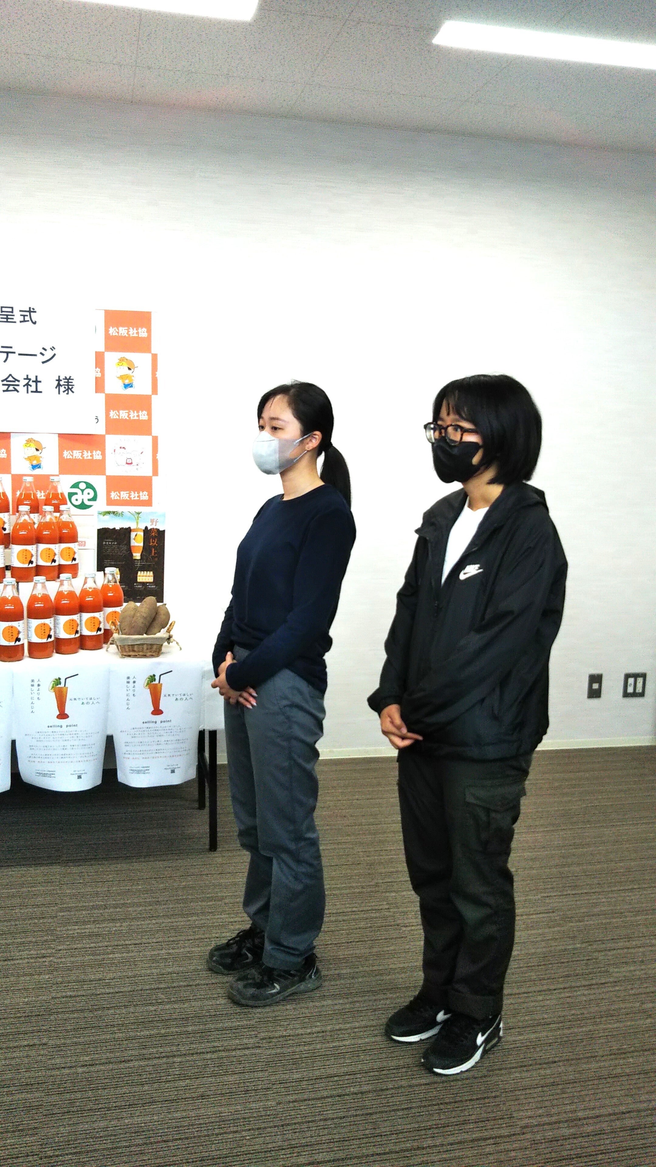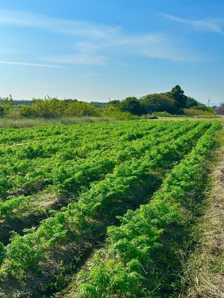 こんにちは、私は角谷汐音と申します。三重県松阪市で農業を営んでおります。豊かな自然に囲まれたこの地で、農業女子として日々奮闘しています。5年前から人参栽培を開始しました。人参の味がそのままジュースの味になりますので、土壌の改良を重ね、新潟での委託製造ではありますが、3年前から繊維たっぷりで甘い「松阪人参ジュース」と林檎を加えた「松阪人参と林檎のミックスジュース」を販売することができました。令和3年3月にファームステージ株式会社を設立し、良きパートナであるベトナム人のゴックさんと二人で栽培から販売まで行っています。人参ジュースは、採れたての人参本来の甘さと食感を味わっていただけるように仕上げています。自然と調和、協力し心と体の栄養を全国の皆様、幼い子供たち、おじいちゃん、おばあちゃんにお届けするという思いで、人参の収穫を楽しみにしています。