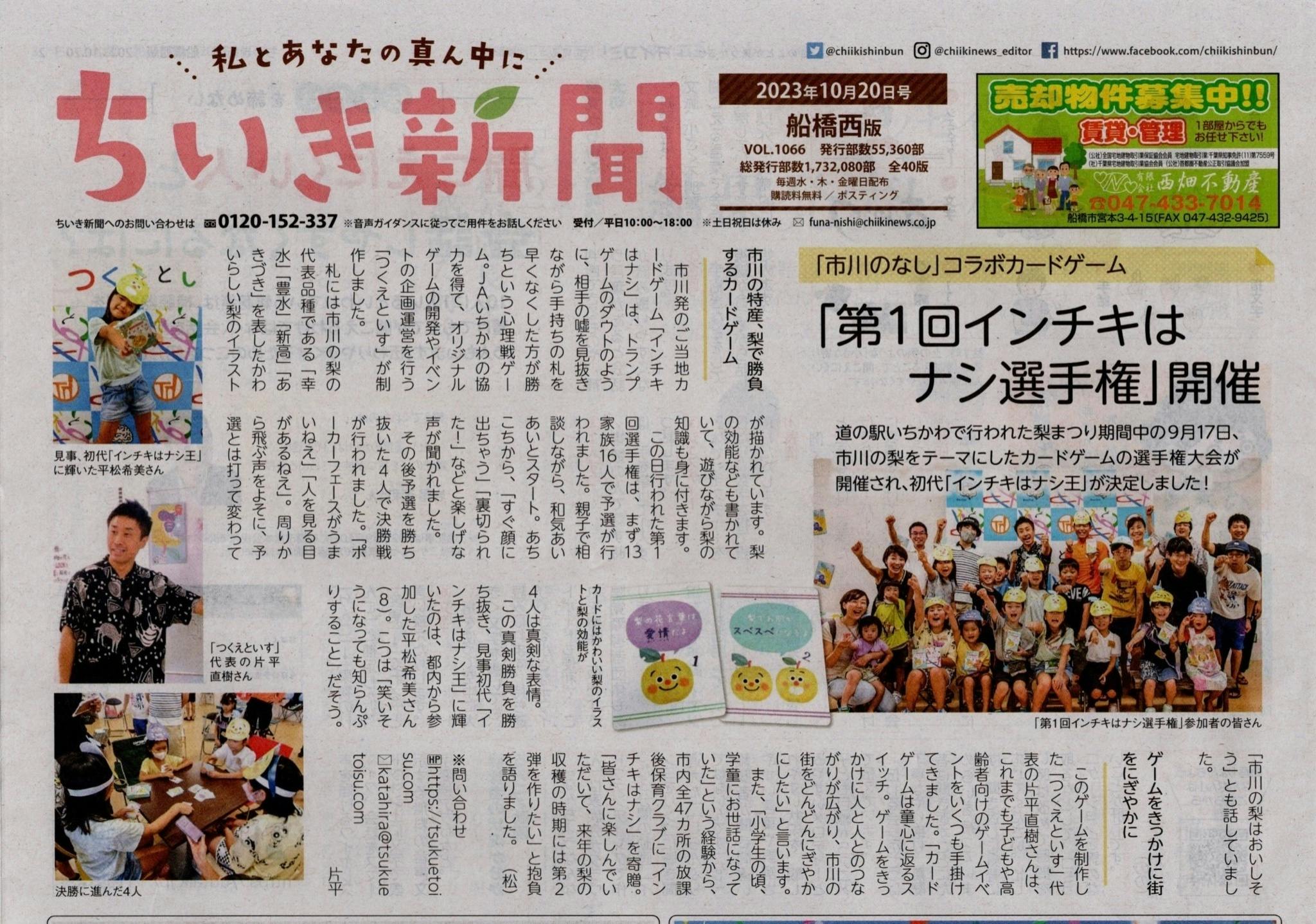 はじめまして、千葉県市川市をボードゲームのまちと言わしめるべく、地域ブランド「市川の梨」をテーマにしたご当地カードゲームインチキはナシをつくり、その大会を盛り上げるプロジェクトを立ち上げました片平と申します。