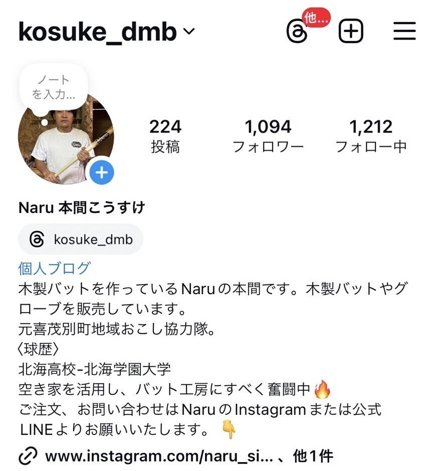 私は北海道の喜茂別町という町で木製バット職人を目指し日々活動しています。小学校から大学まで野球を続け今でも週末には草野球をするほどの野球好きです。