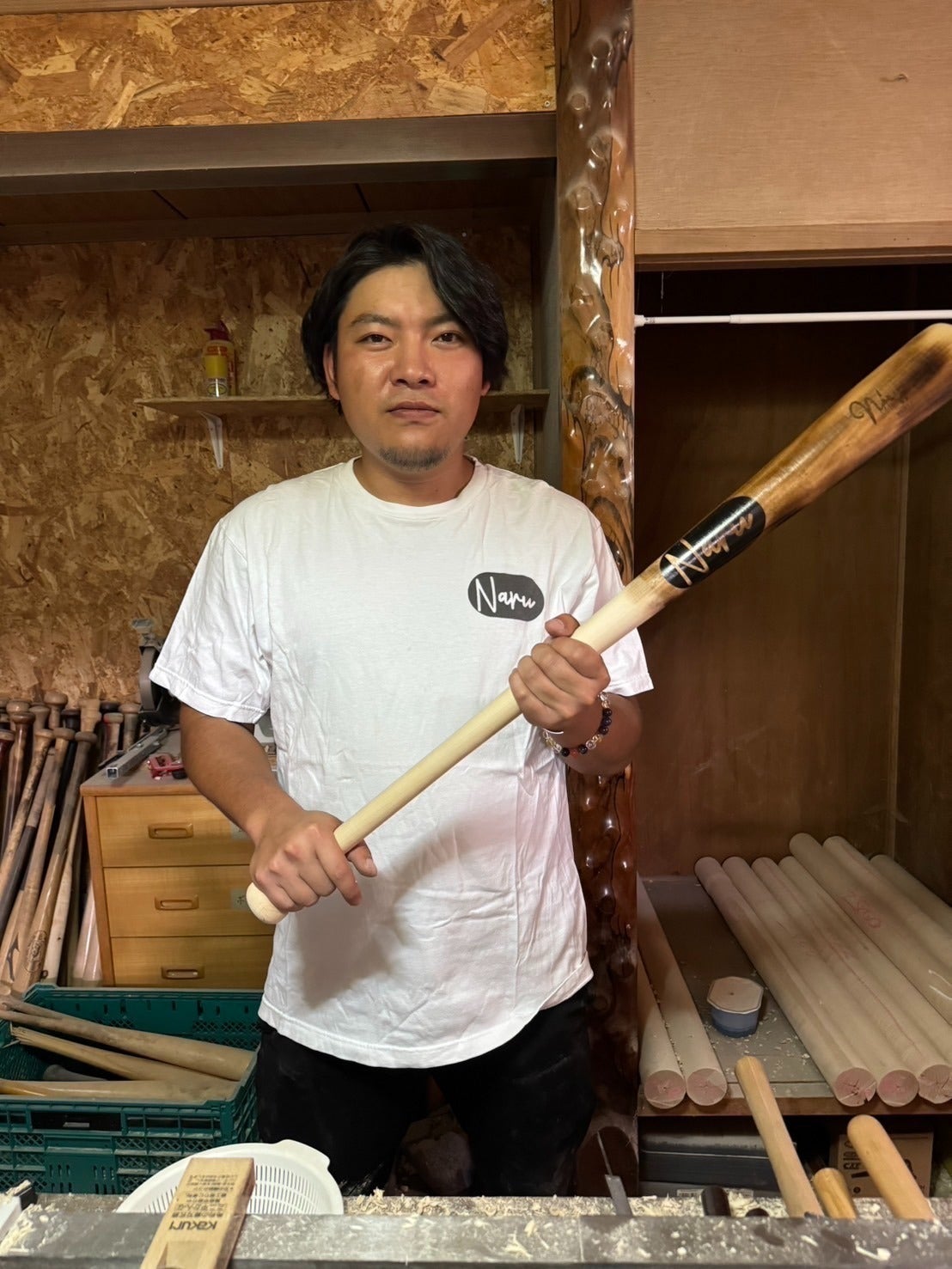 この度、私はオリジナルブランド「Naru」を立ち上げました。木製バットはもちろんグローブ、今後は野球用品を中心に商品展開をしていく予定です。「Naru」の由来は漢字の「成」の字から取りました。作り手と使い手が「共に成長」「共に達成」できるようにという思いを込めました。