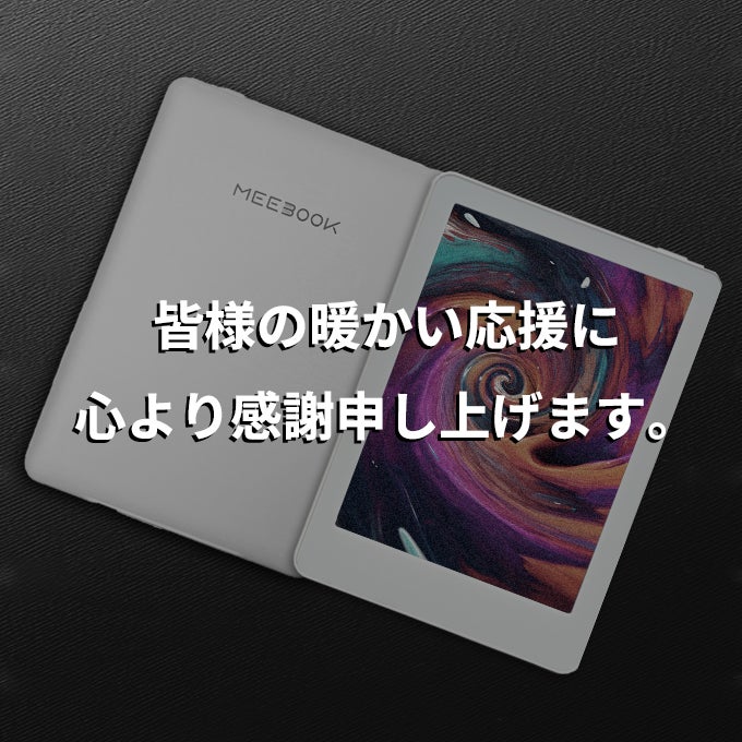 ご支援者の皆様お世話になっております。株式会社ギャザテックです。この度はカラーE-lnkリーダー「MEEBOOK M6C」にご支援いただき、誠にありがとうございます。おかげさまで、公開初日にご支援金額100万円を突破することができました。多くの方にご関心をお寄せいただけたこと、スタッフ一同大変嬉しく思っております。皆様の温かいご支援に、心より感謝申し上げます。これからも、より多くの方にお届けできるようスタッフ一同努力して参りますので、SNSなどでの拡散にご協力いただけますと幸いです。この勢いをさらに伸ばすために、ぜひ皆様のお力をお貸しください!【シェア用URL】https://camp-fire.jp/projects/791068/previewもしご質問などございましたら、お問合せボタンよりお気軽にご連絡くださいませ。今後ともどうぞよろしくお願い申し上げます!