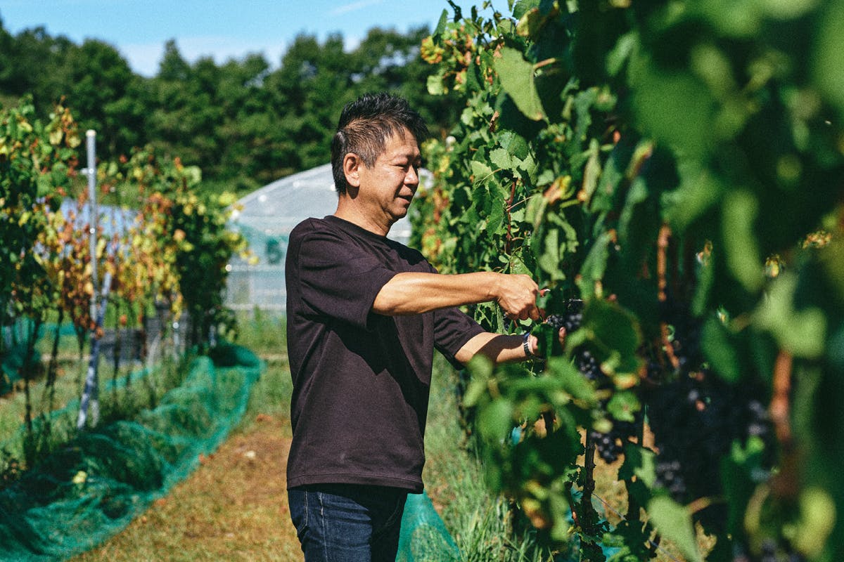荒れていた土地を少しずつ開墾して畑にし、葡萄が育つのに適した環境へと土壌改良を進めていくこと。これが想像以上に大変な作業でした。最初はこの土壌が葡萄の栽培に適していないのではないかと言われていましたが、手探りで有機肥料を使って土壌改良を重ねていきました。その結果、木々が次第にこの地に順応し、数年の時を経て見事な葡萄畑が広がるようになりました。