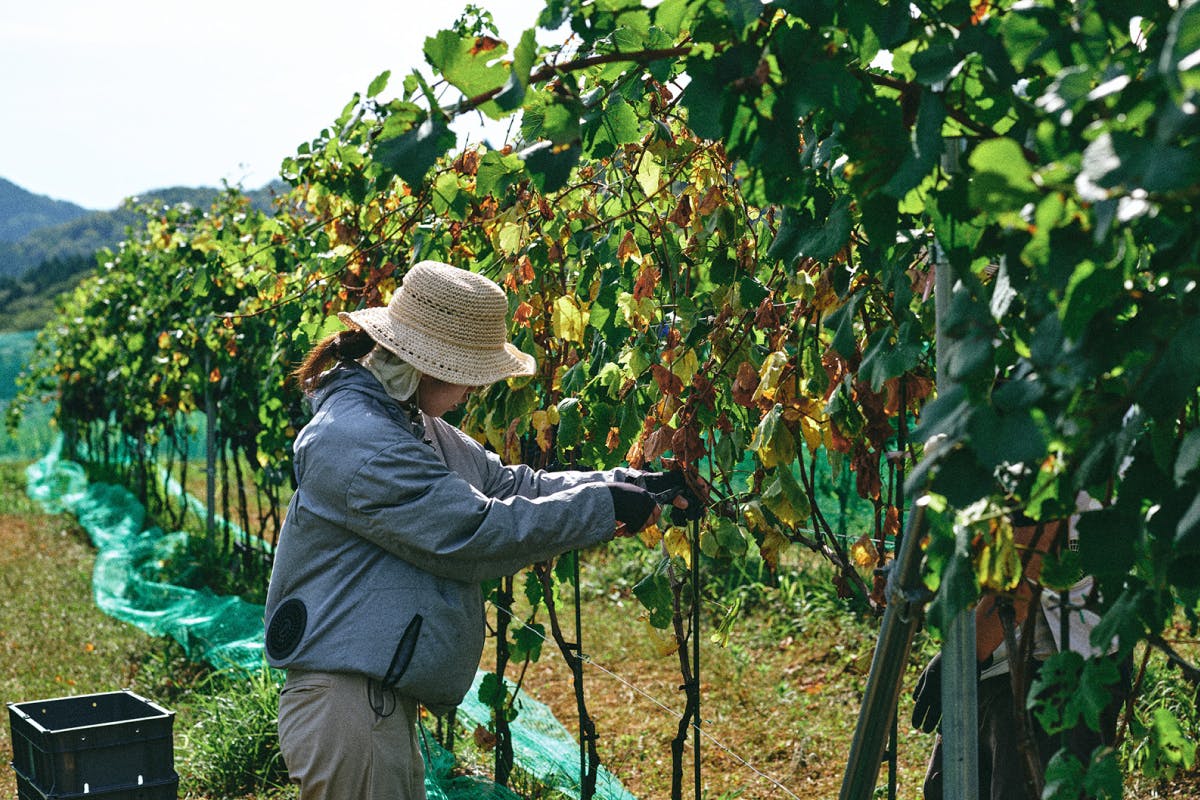 ワインに使用する葡萄はカベルネ・ソーヴィニヨンやシャルドネ、カベルネ・フラン、ピノ・ノアール、ソーヴィニヨン・ブランなど欧州系品種を中心に、全12種類を有機肥料で栽培しています。これらの葡萄は越前・白山の風土に徐々に馴染み、年々そのポテンシャルを高めています。